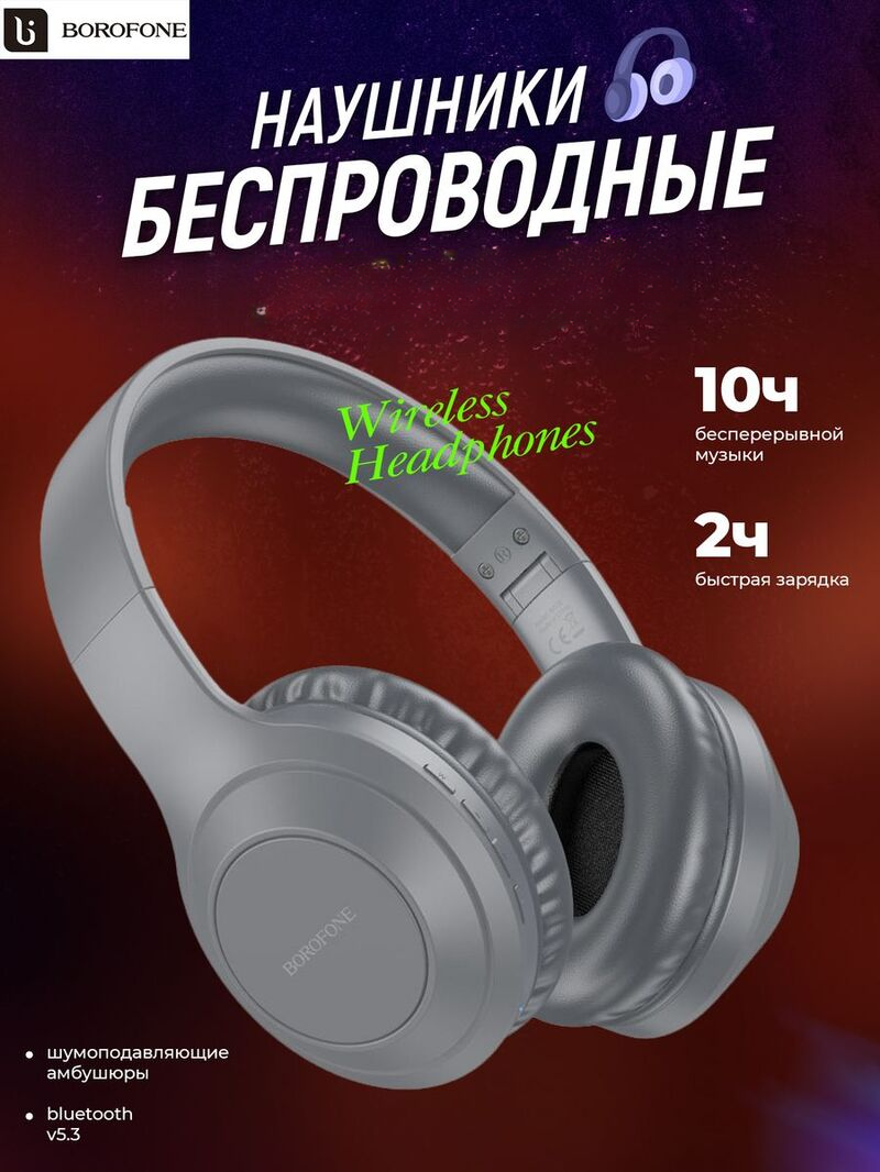 Беспроводные наушники Borofone BO22 Elegant, Bluetooth 5.3, полноразмерные, серебристый 1 990 ₽ Подробнее
