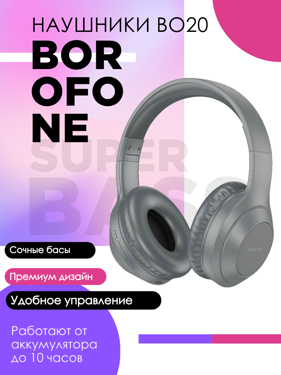 Беспроводные наушники накладные BOROFONE BO22 Elegant, Bluetooth, серый 1 583 ₽ Подробнее