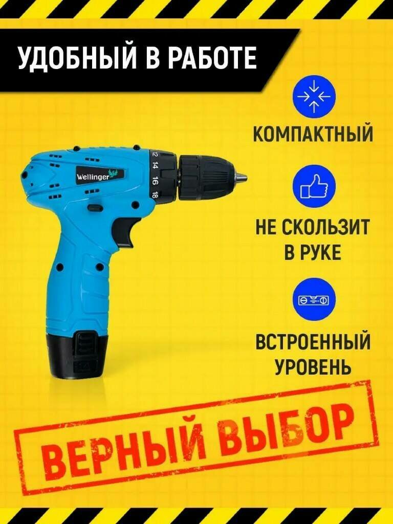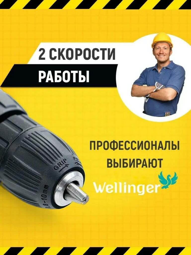 Дрели и шуруповерты Шуруповерт аккумуляторный Wellinger, дрель шуруповерт аккумуляторная, дрель с встроенным уровнем, шуруповерт бесщеточный