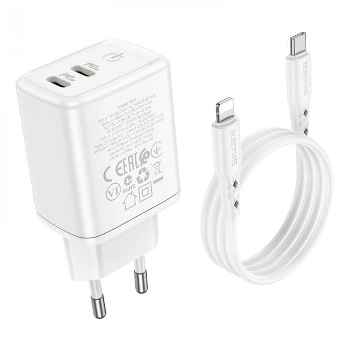 Зарядки для гаджетов Сетевое зарядное устройство Borofone BN9 + кабель Lightning на Type-C, белый