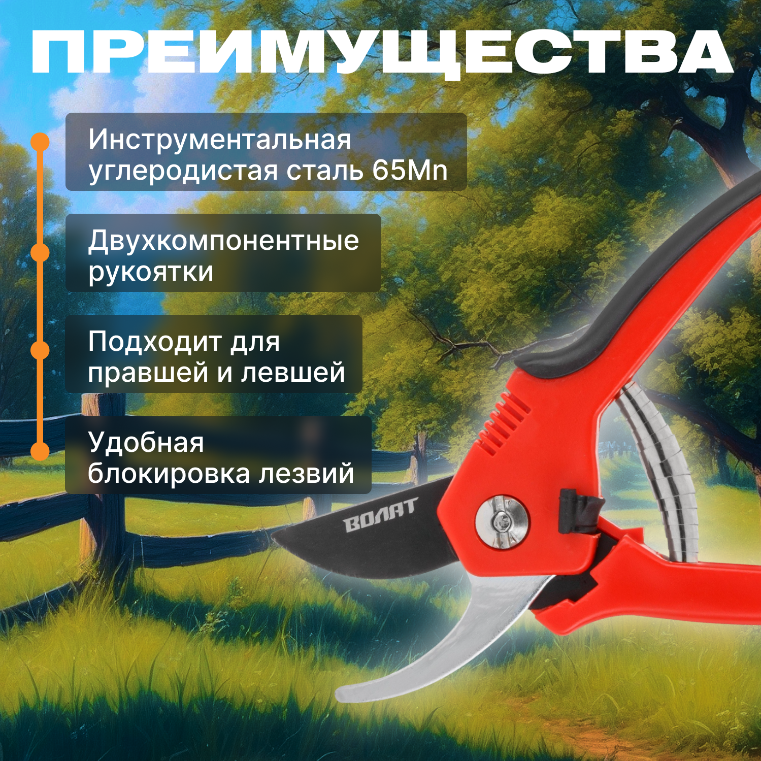 Секатор универсальный садовый волат (59060-01) кусторез, сучкорез ручной, ножницы садовые для деревьев, кустарников, цветов