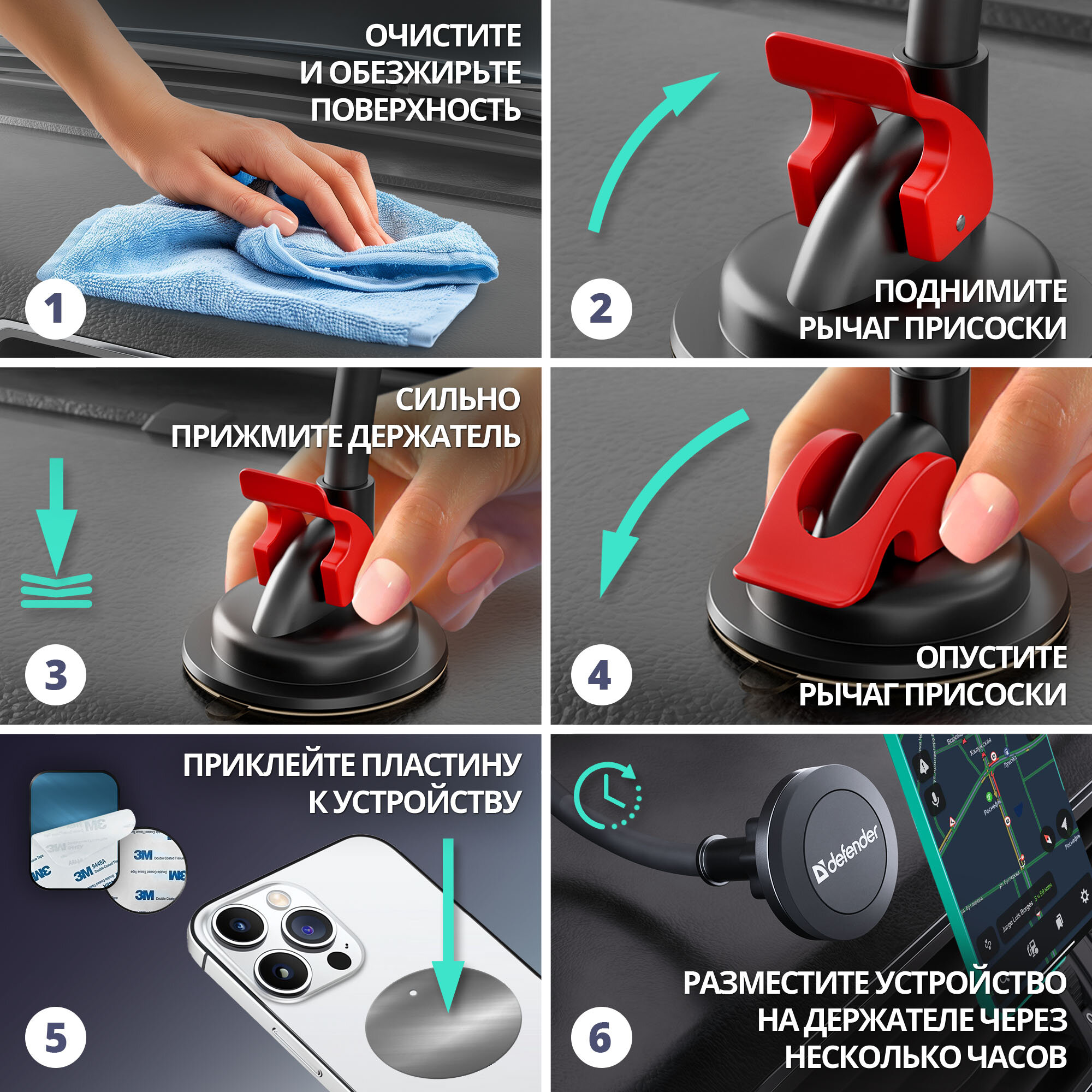 Комплект 3 штук, Держатель в авто DefenderCH-118 магнит, на панель 2 327 ₽ Подробнее