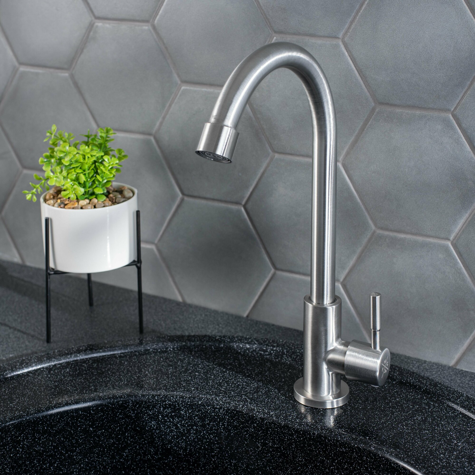 Смеситель Кран для холодной воды, РМС SUS124-269F, нержавеющая сталь, поворотный излив, рычажное управление