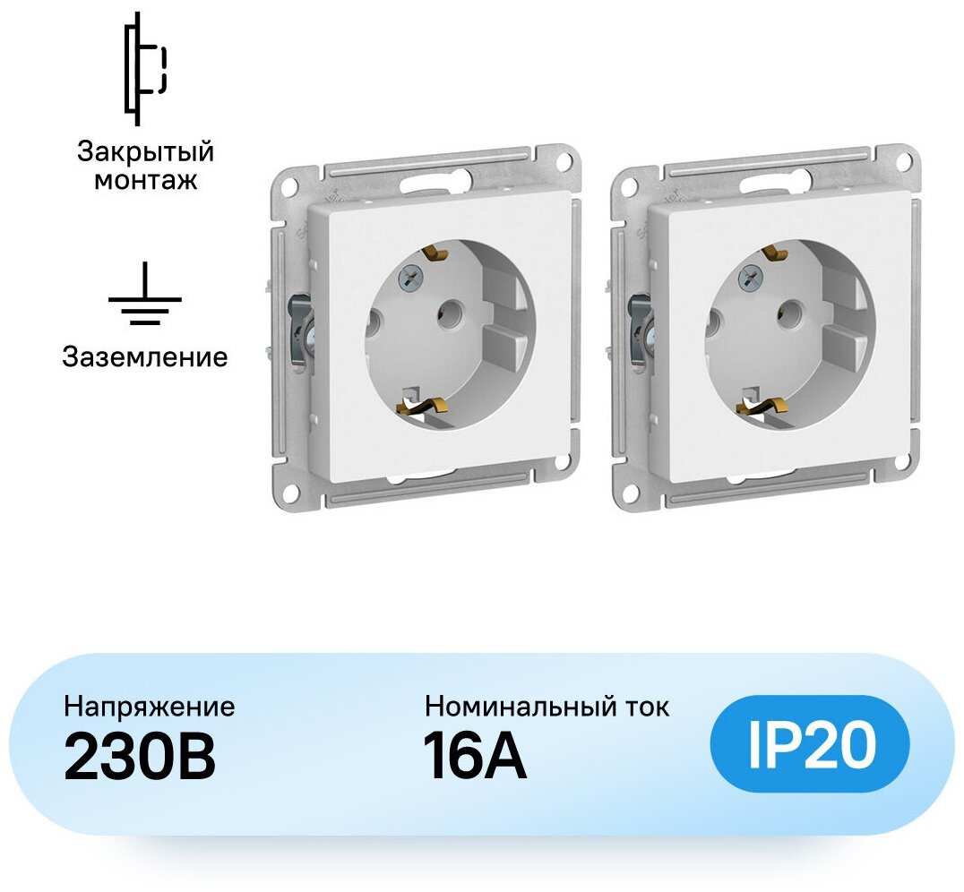 Холодильники Механизм розетки с заземлением белый Schneider Electric AtlasDesign (комплект из 2 шт)