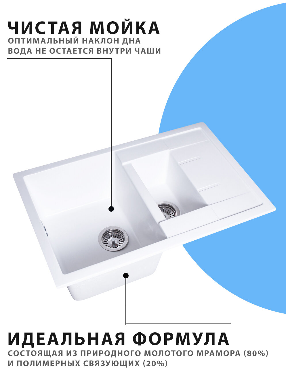 Кухонная мойка Мойка для кухни из искусственного камня двойная (76,6x49,2), белая