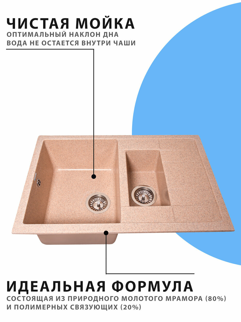 мойка для кухни из искусственного камня двойная (76,6x49,2), бежевая