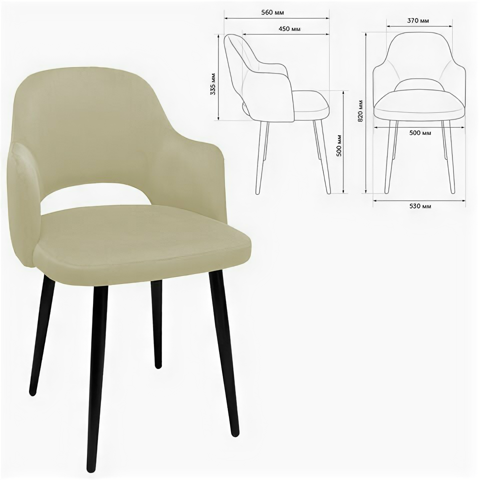 Стул обеденный Brabix Acqua CF-079, велюр бежевый, каркас металлический усиленный черный, 532779