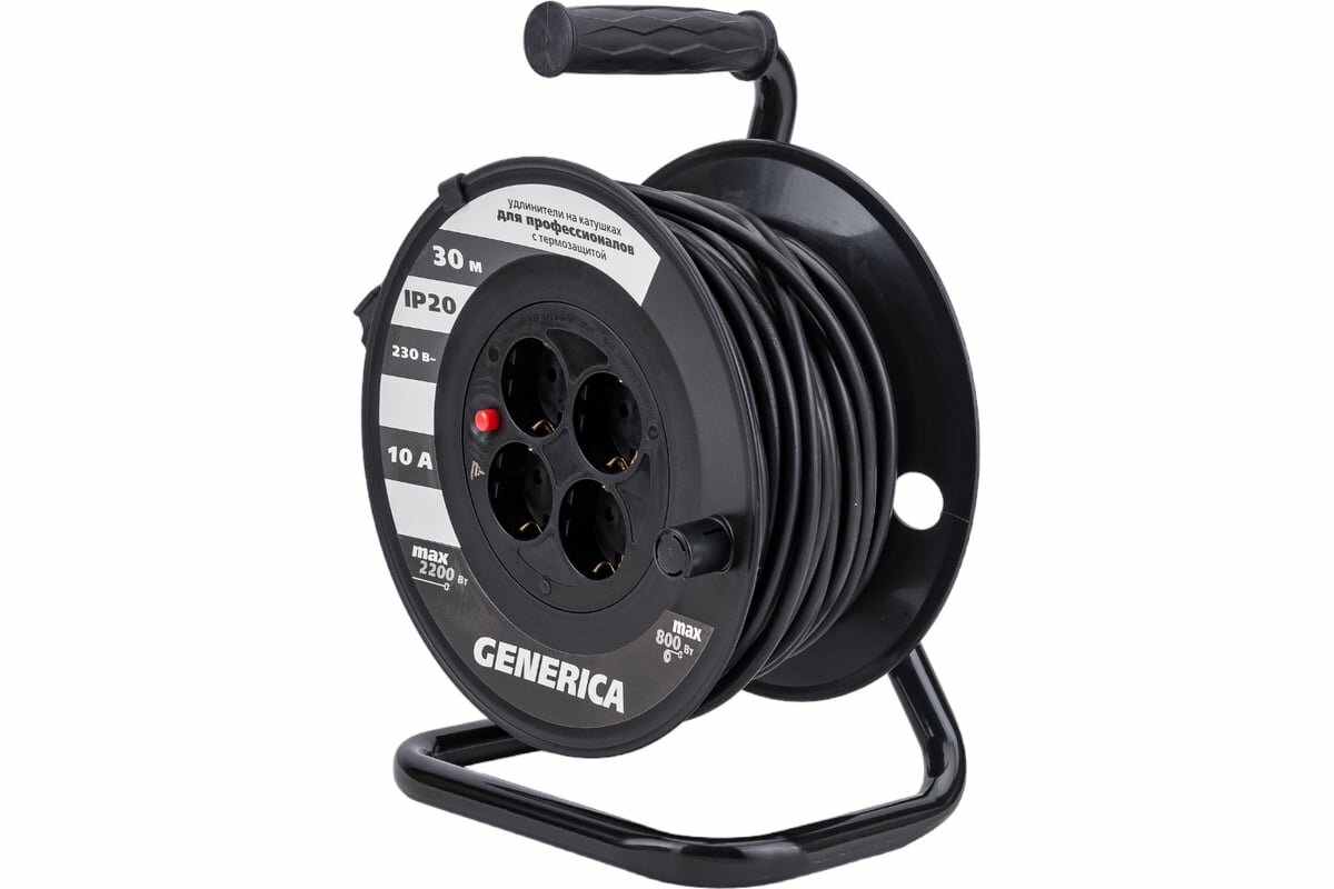 Сетевые фильтры и удлинители IEK GENERICA силовой удлинитель на пласт. катушке УК30 термозащ. 4 роз. 30м ПВС 3х1 10А земля (арт. 806771)