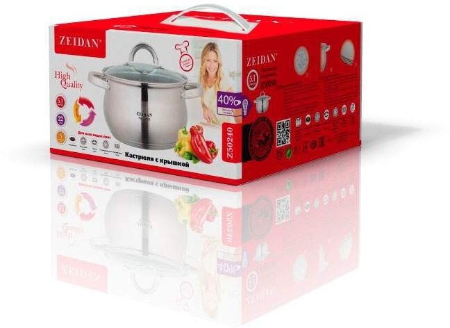 Кастрюля из нержавеющей стали с крышкой Zeidan 4 л для газовых, электрических и индукционных плит