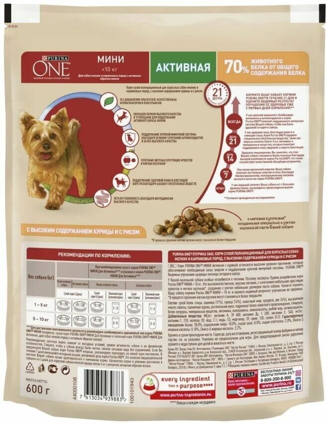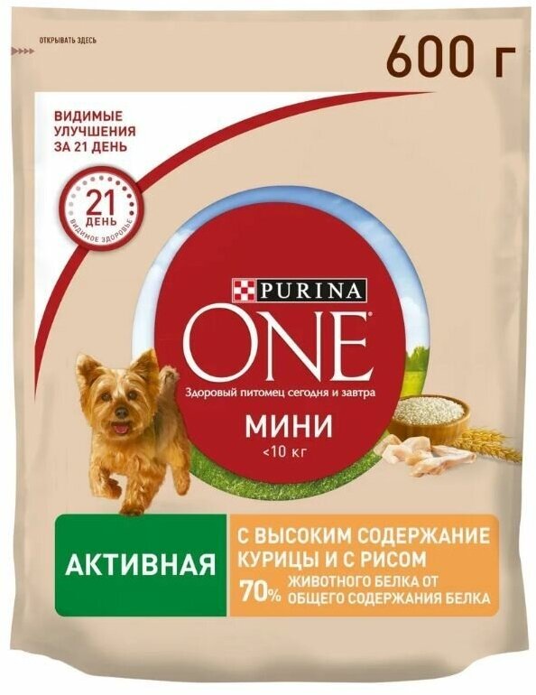 Корм для собак Сухой корм с курицей и рисом 600 гр Purina One Мини, 1 шт