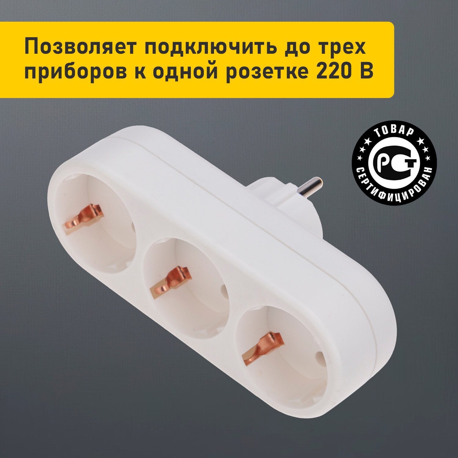 Тройник электрический Rexant 16 А с заземлением