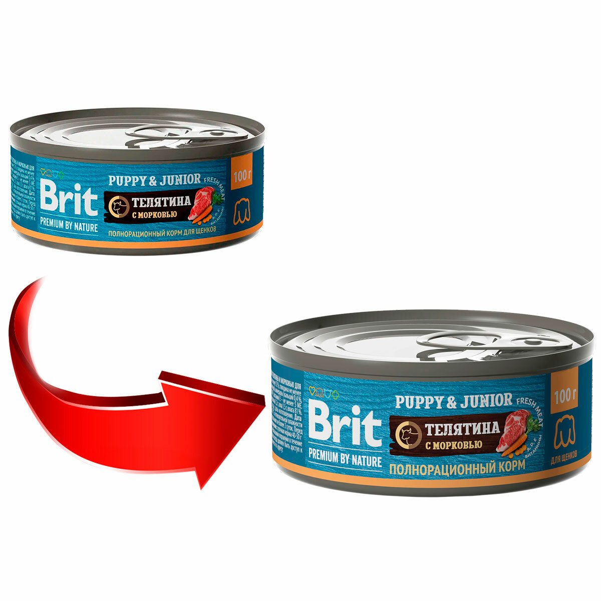 Brit Premium by Nature Корм консервированный с телятиной и морковью для щенков всех пород, 100гр, 12 штук