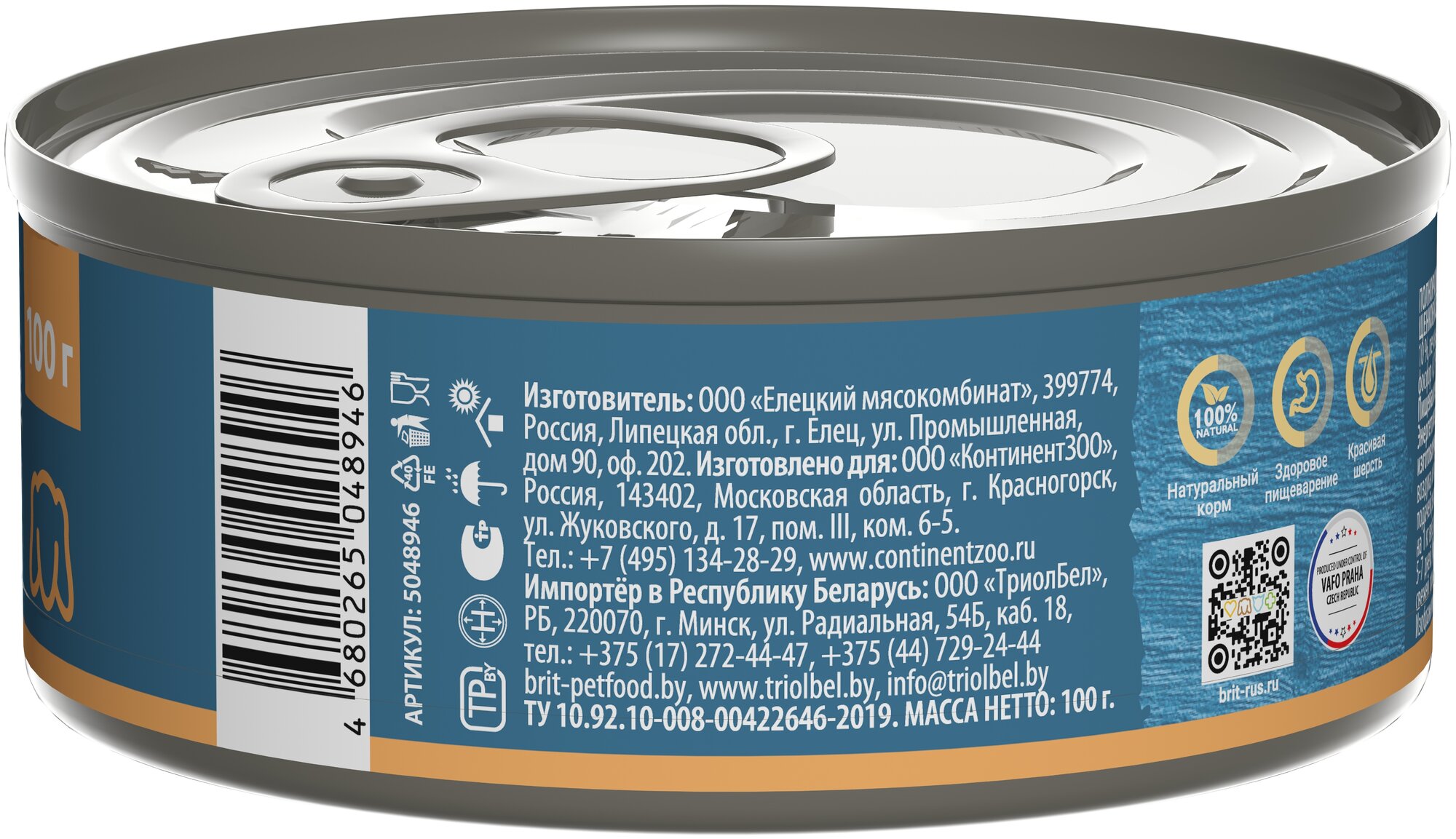 Brit Premium by Nature Корм консервированный с телятиной и морковью для щенков всех пород, 100гр, 6 штук
