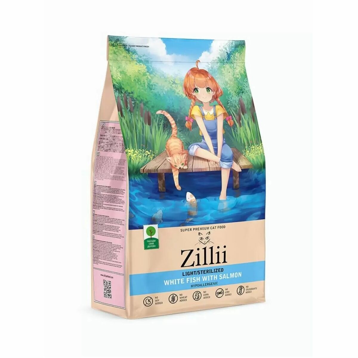 ZILLII Light/Sterilized Cat Сухой корм для взр. кошек с избыт. весом и стерил. Бел.Рыба Лосось 2кг
