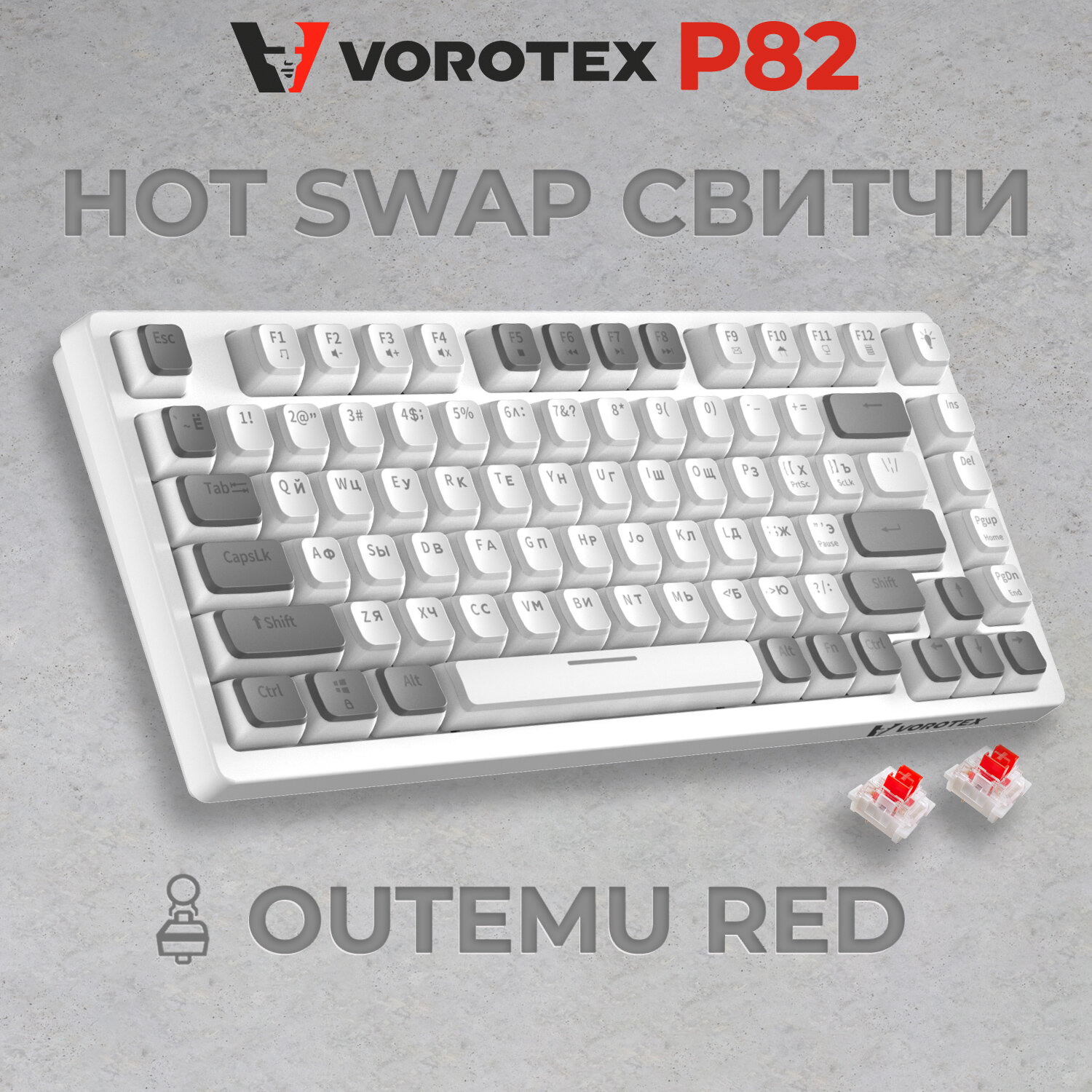 Клавиатура игровая проводная VOROTEX P82 Outemu Red Switch (Серый, белый) 3 140 ₽ Подробнее