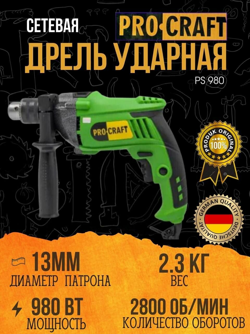 Дрели и шуруповерты Дрель электрическая ударная PROCRAFT PS980