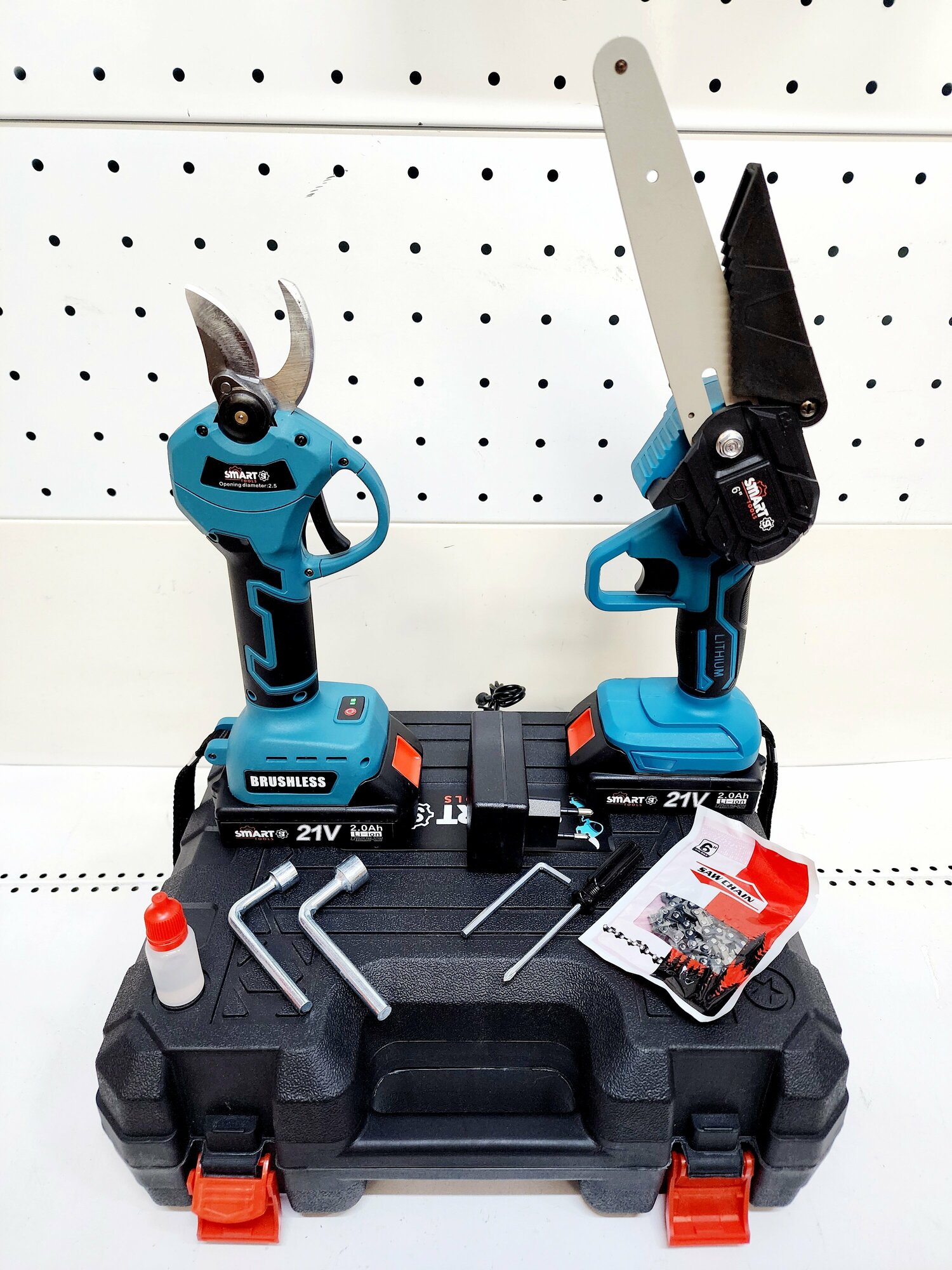 Пилы Набор садового аккумуляторного инструмента секатор + цепная пила 6" SMART(21В, 2Ач *2, 12000/780об/мин, 25мм, 1/4-6"/15см, кейс)