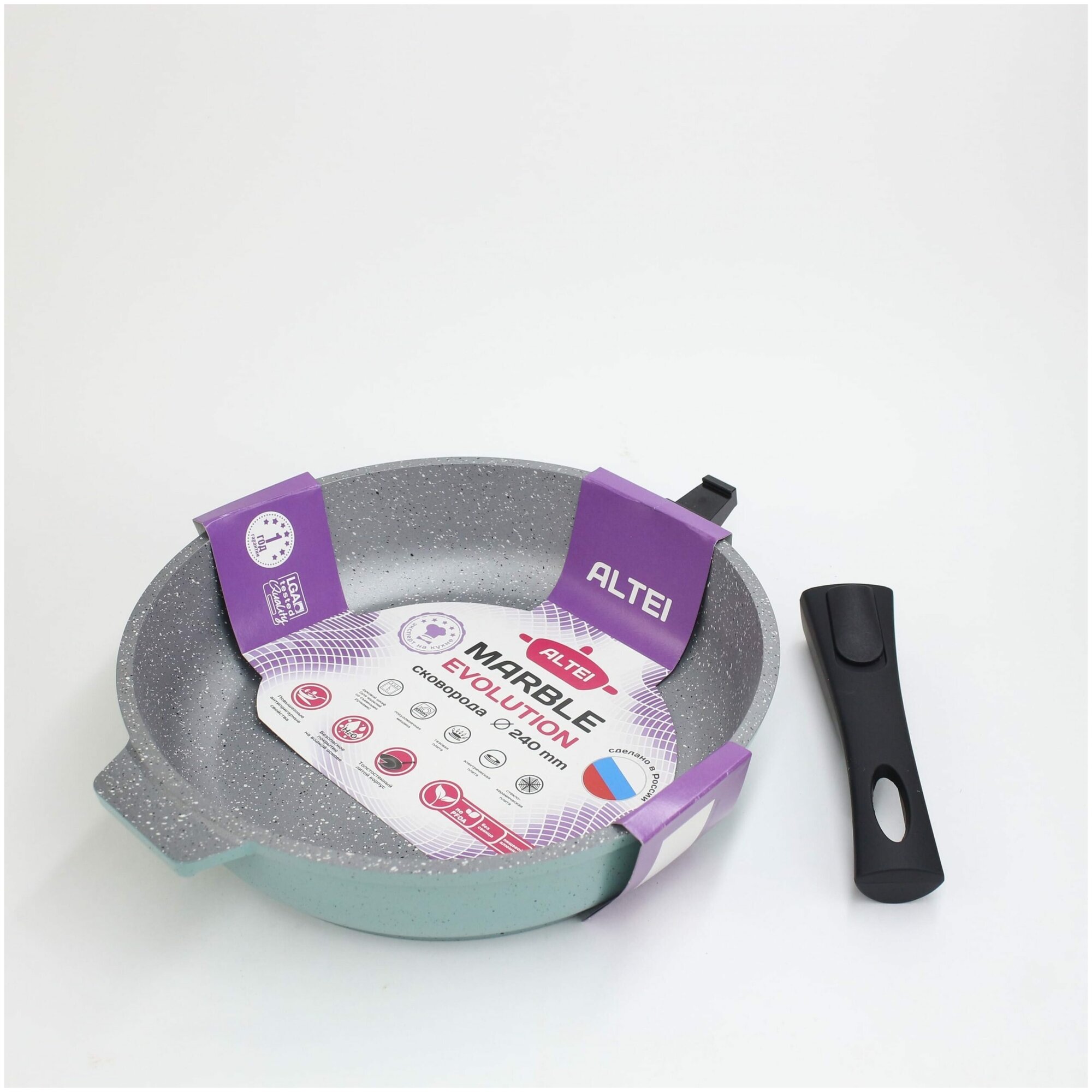 Сковородки Сковорода 02-2432-100 ALTEI "Marble evolution silver" 24см. съем.ручка гранит. покр. алюм. серый