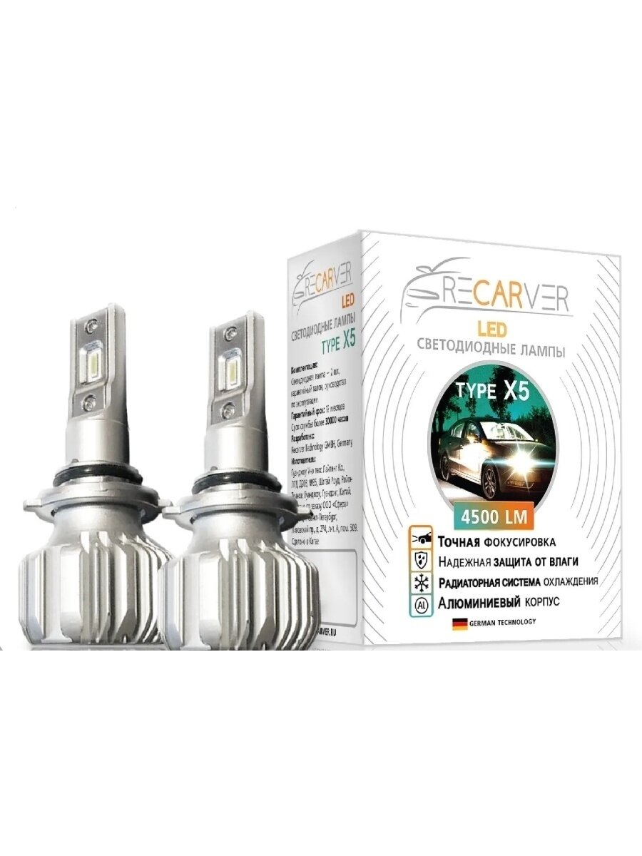 Автолампы Светодиодные автолампы Recarver Type X5 HB4 4500 lm 6000K (2шт)