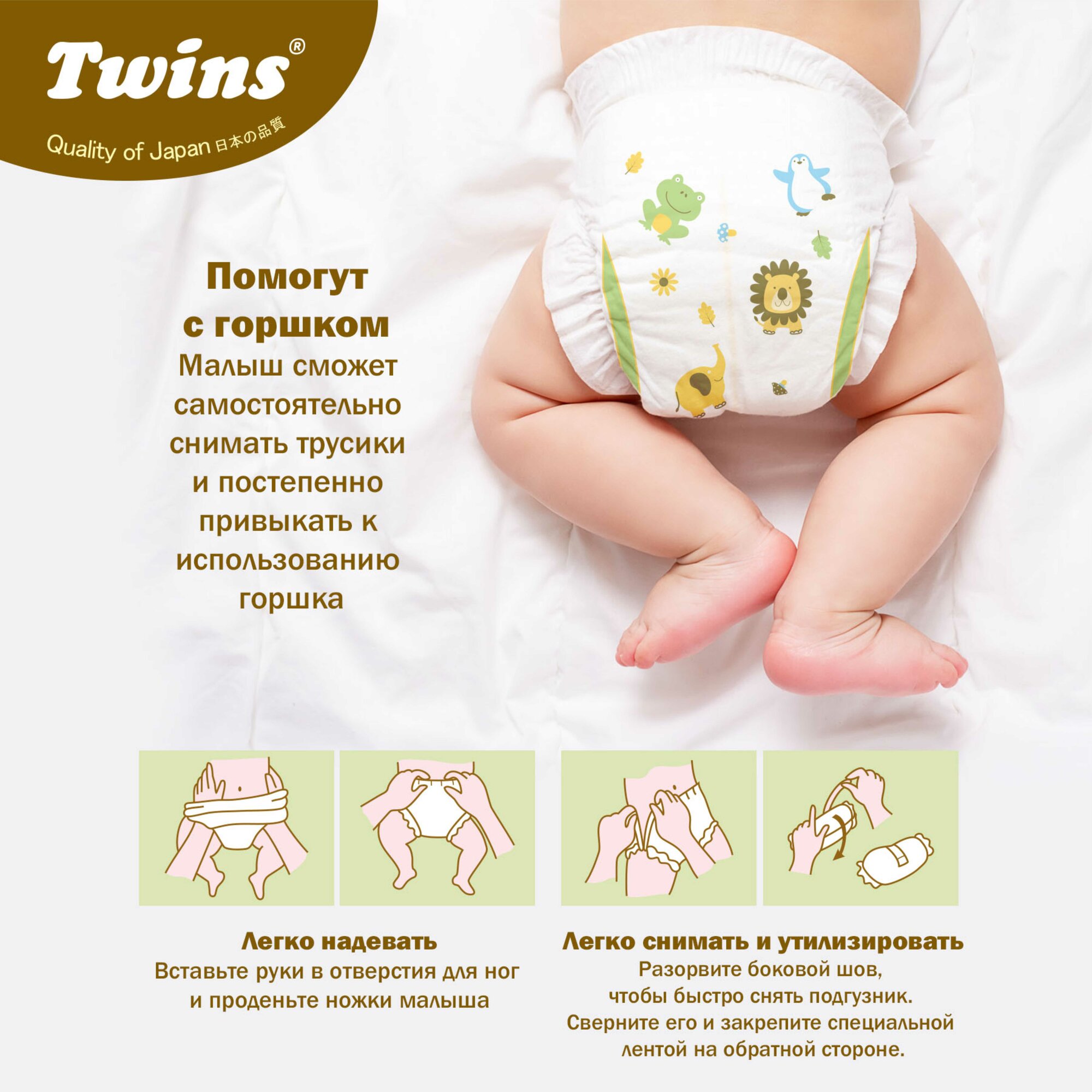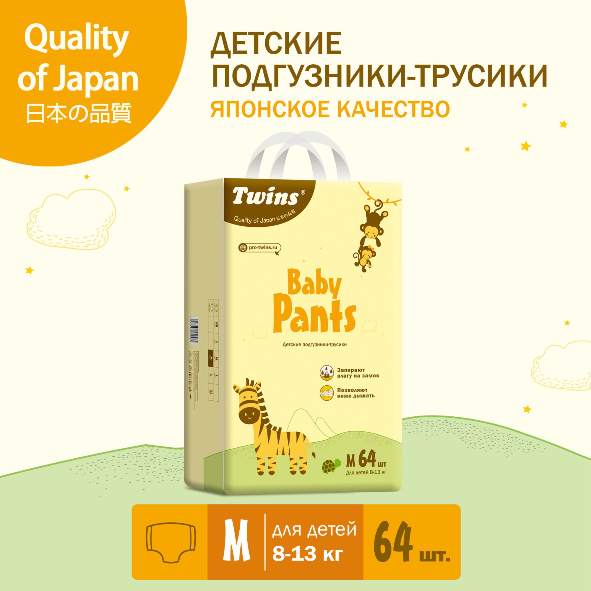 Подгузники Подгузники-трусики Twins, размер M (8-13кг), 64 шт