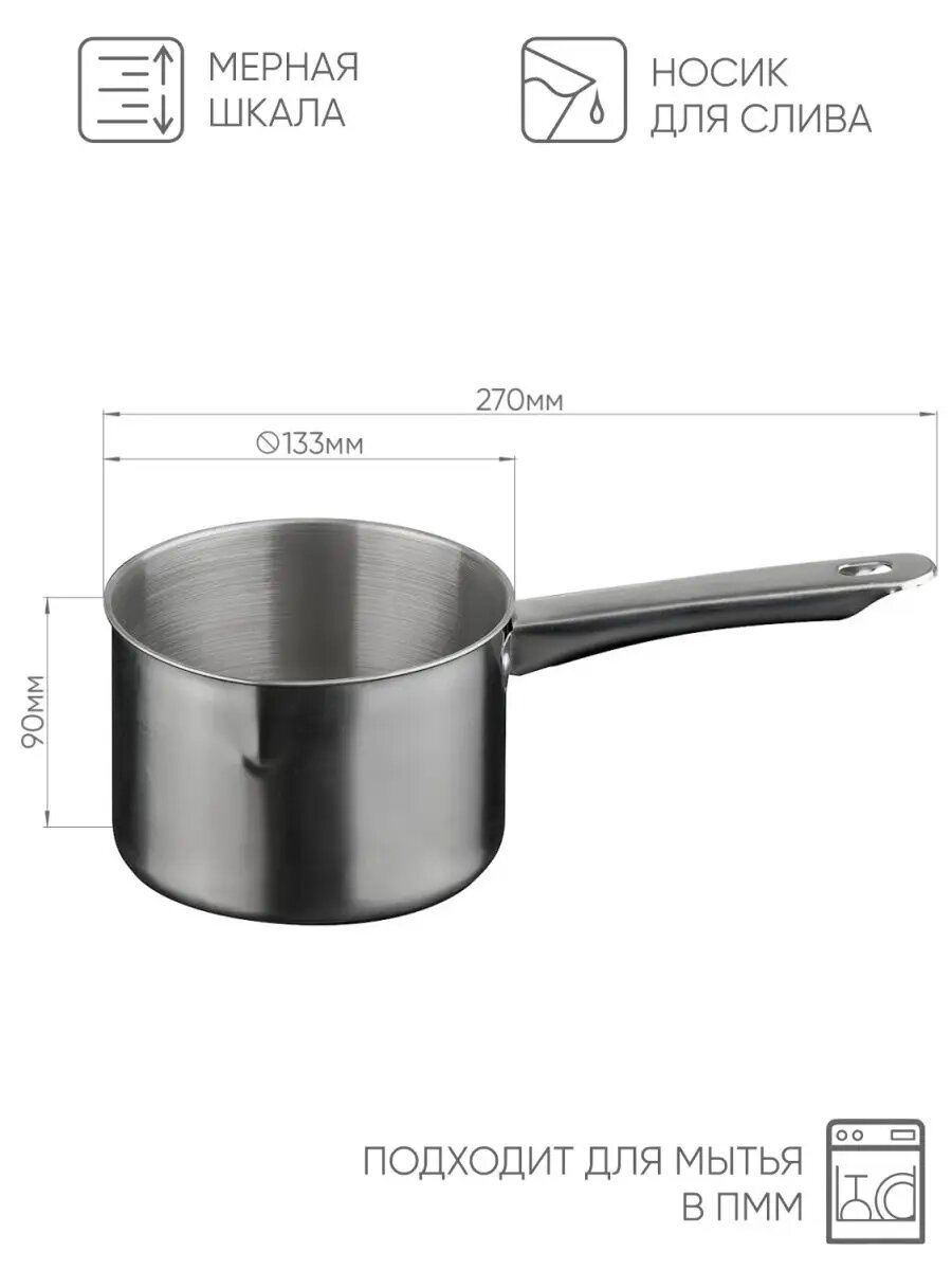 Кастрюли Ковш кухонный 900 мл с мерной шкалой нержавеющая сталь