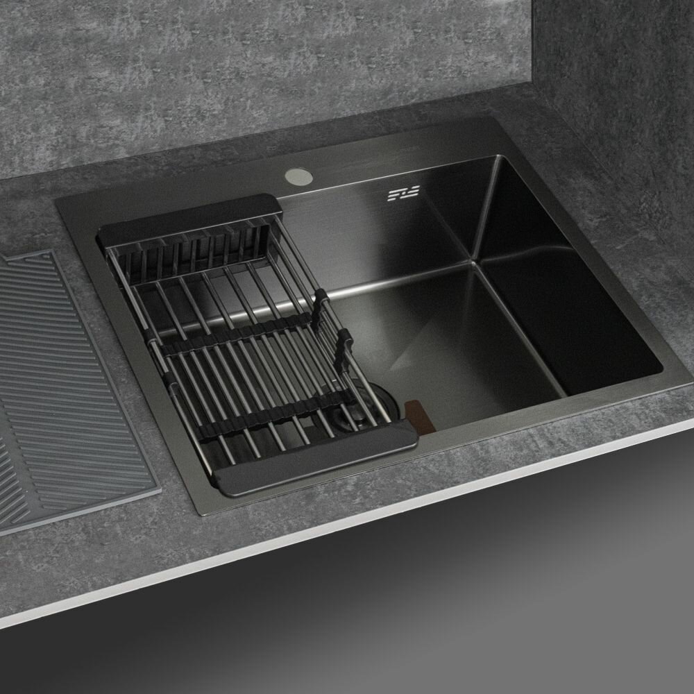 Кухонные мойки Мойка врезная 60х50 см, графит, толщина 3,0 х 1 мм, глубина 200 мм + большой сифон с переливом + корзина