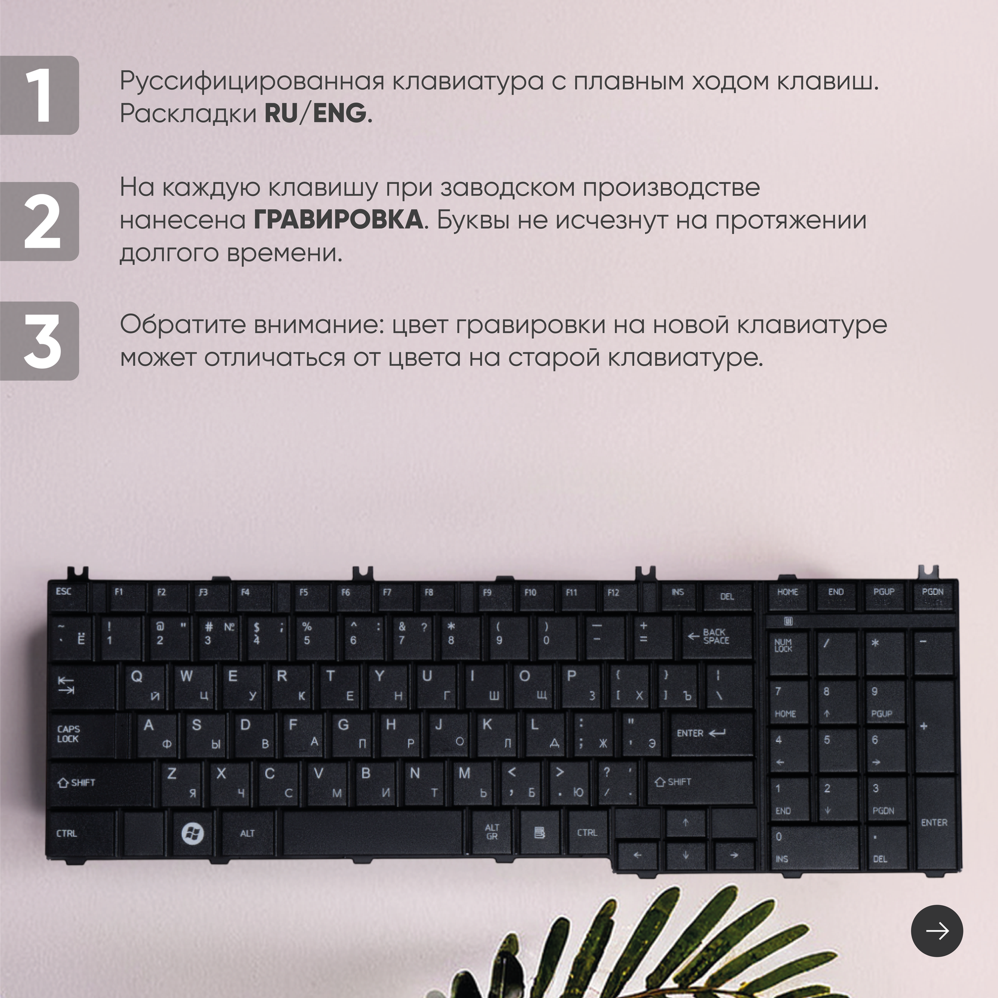 | Конструкция клавиш | монолитная |