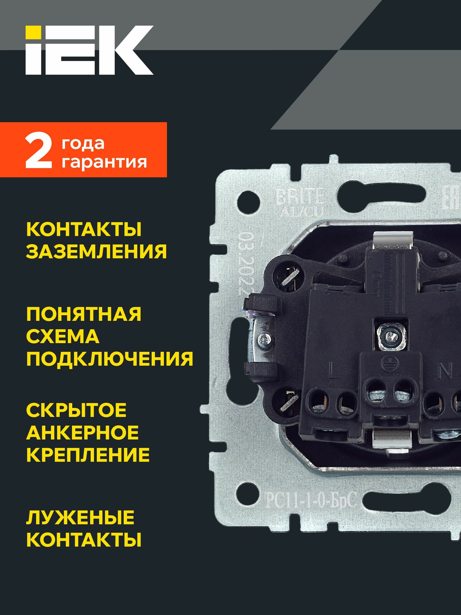 IEK BRITE Роз. с з/к без з/ш 16А РС11-1-0-БрЧ черн, IEK, арт. BR-R11-16-K02 320 ₽ Подробнее