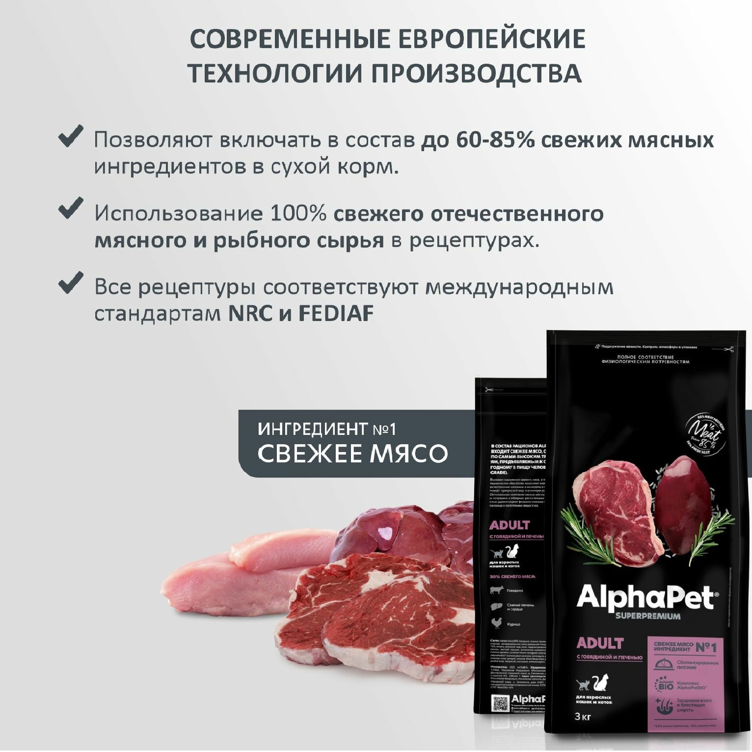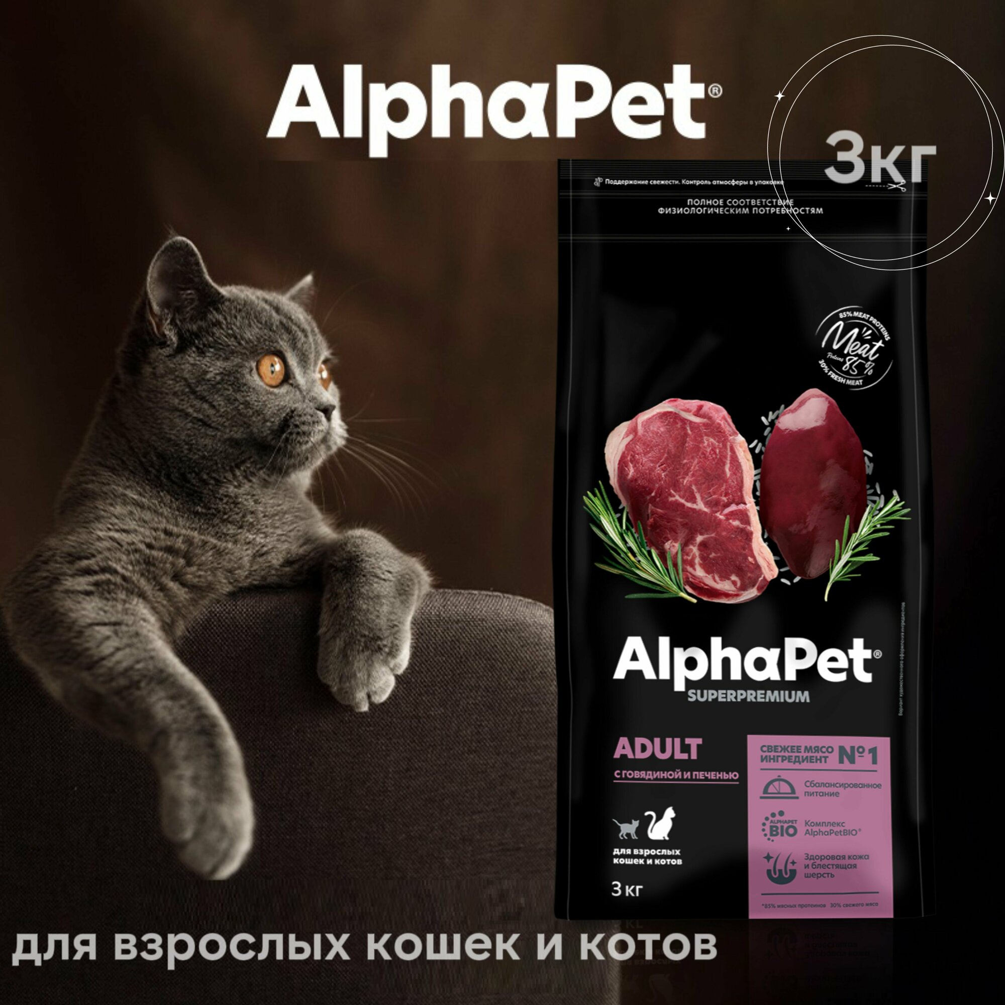 Сухой корм для взрослых кошек ALPHAPET Adult Superpremium с говядиной и печенью 3кг