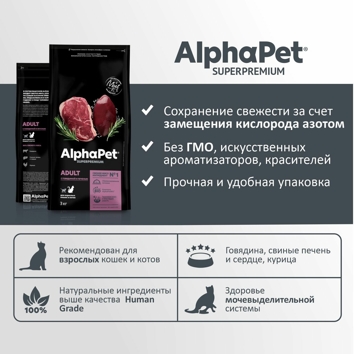 Сухой корм для кошек AlphaPet Superpremium с говядиной и печенью, 1,5кг