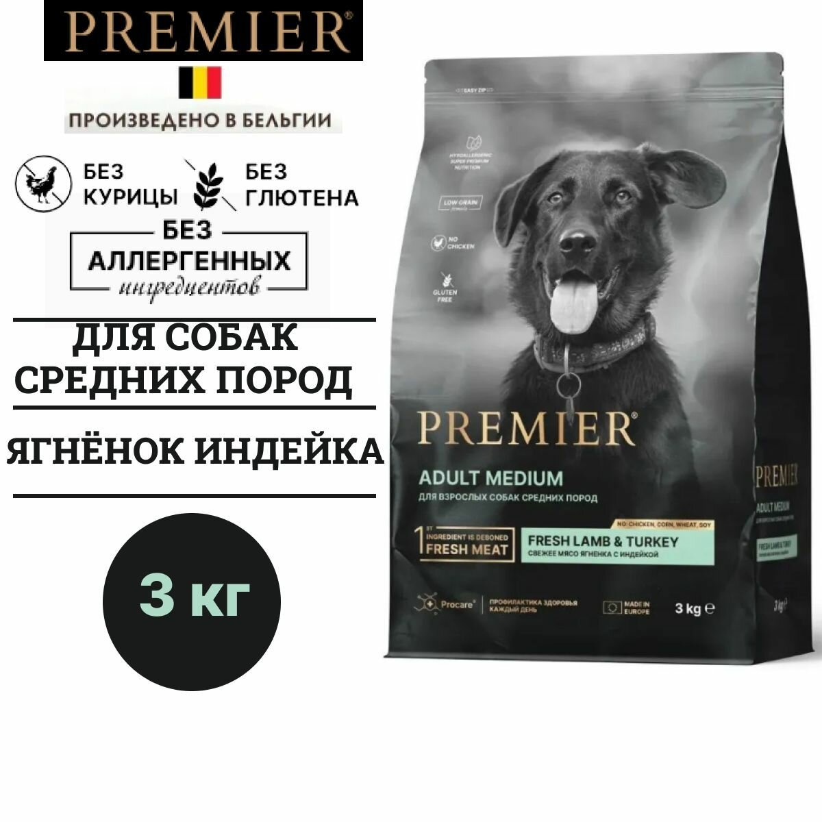 Premier Dog Lamb & Turkey Adult Medium сухой корм для собак средних пород, свежее мясо ягненка с индейкой - 3 кг