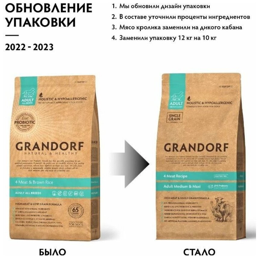 Grandorf сухой корм для собак средних и крупных пород (4 мяса с пробиотиками) 10кг