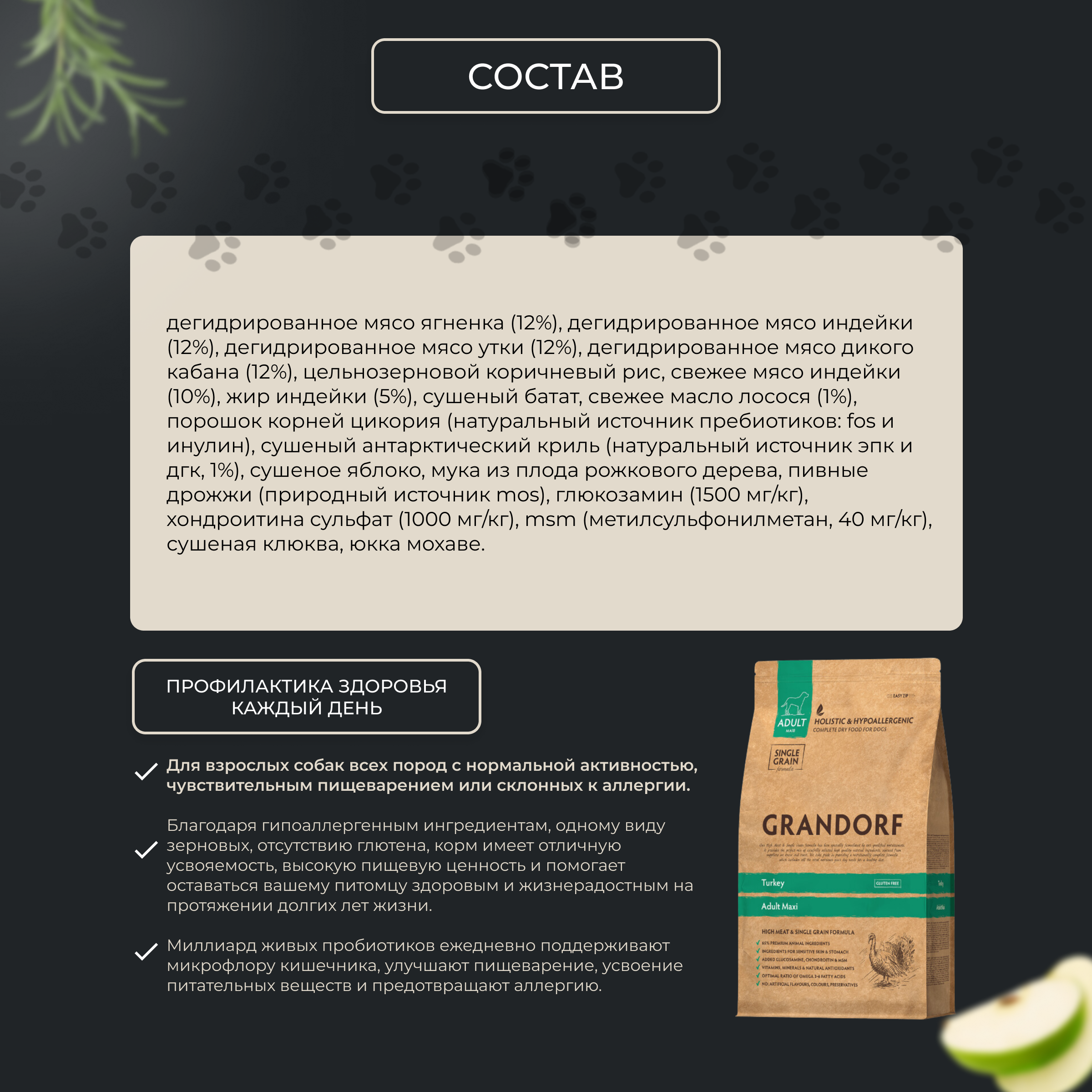 Сухой корм для собак средних и крупных пород GRANDORF с пробиотиками, 4 вида мяса, 10кг (Бельгия)