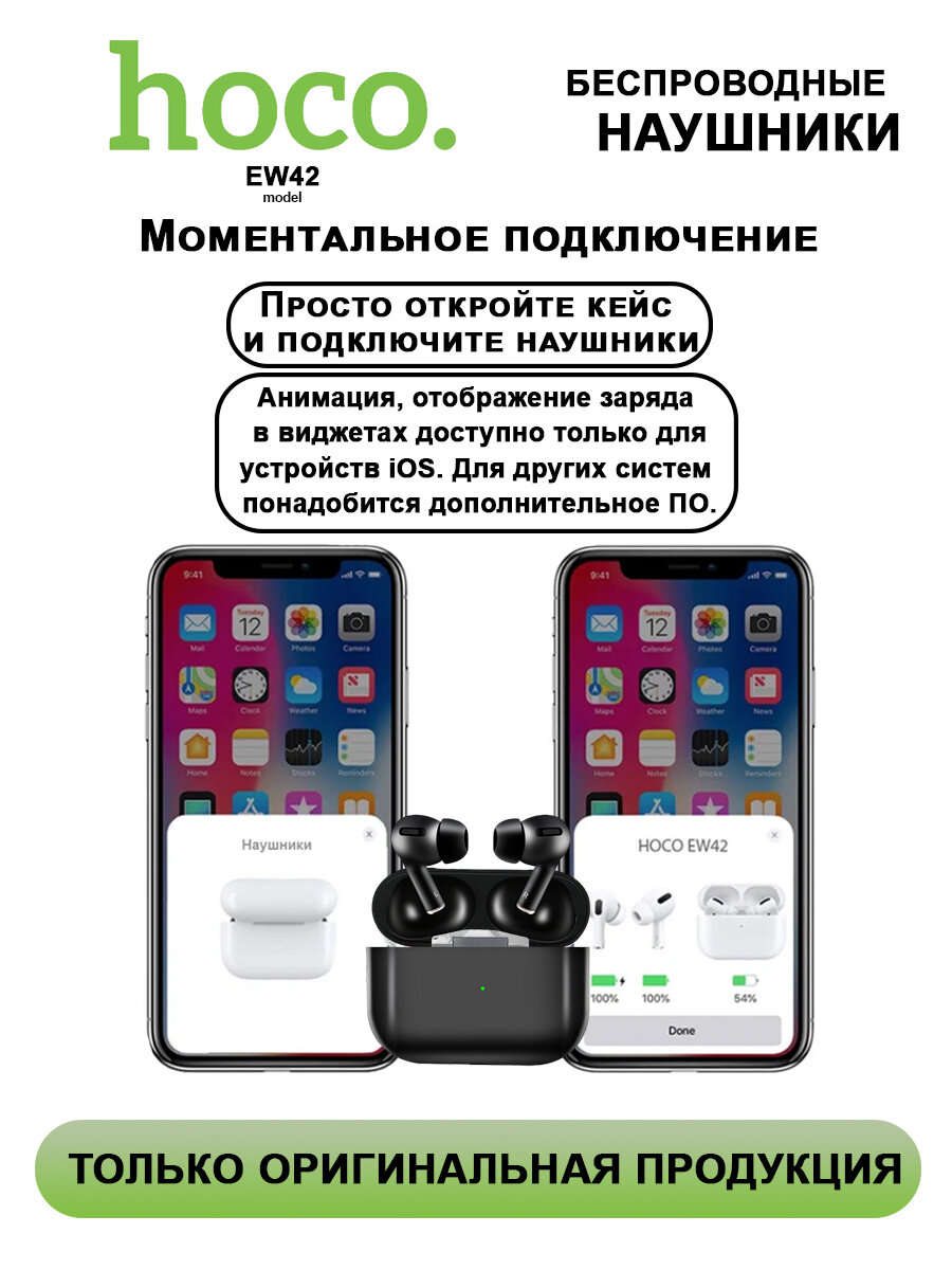 Беспроводные наушники Bluetooth HOCO EW42 Original Series Pods Pro время работы 7 часов (черный) 1 350 ₽ Подробнее