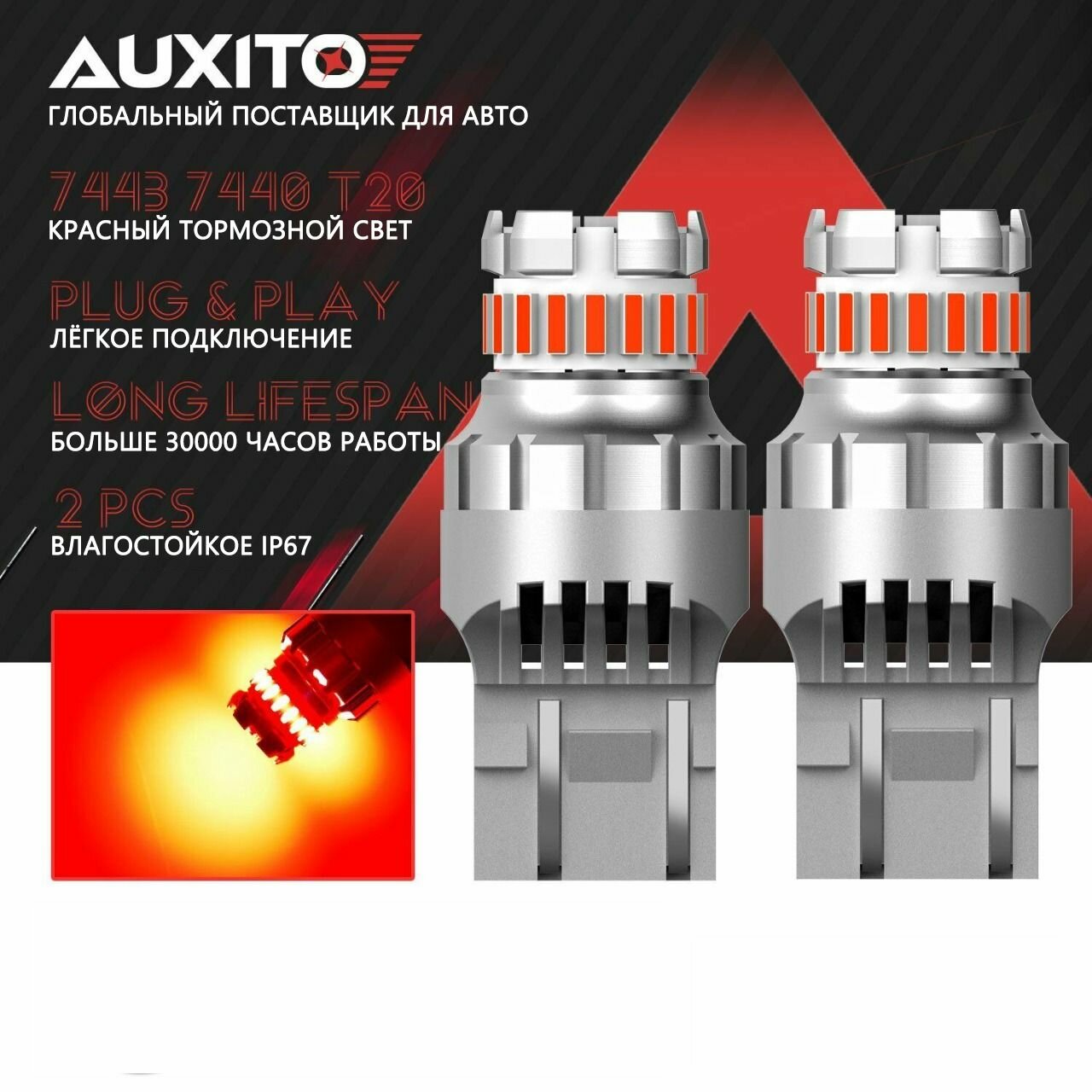 Автолампы Светодиодная лампа AUXITO T20 7443 W21/5W цоколь W3x16q 2шт с функцией стробоскоп двухконтактная красный свет LED автомобильная