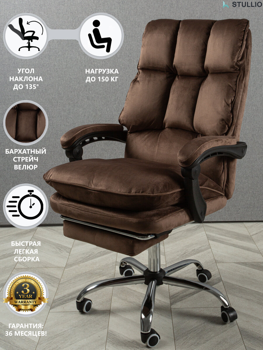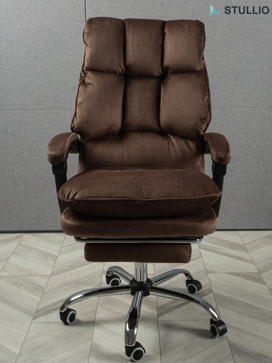 Компьютерные кресла Мягкое компьютерное кресло для дома и офиса, с подставкой для ног, из велюра, цвет коричневый