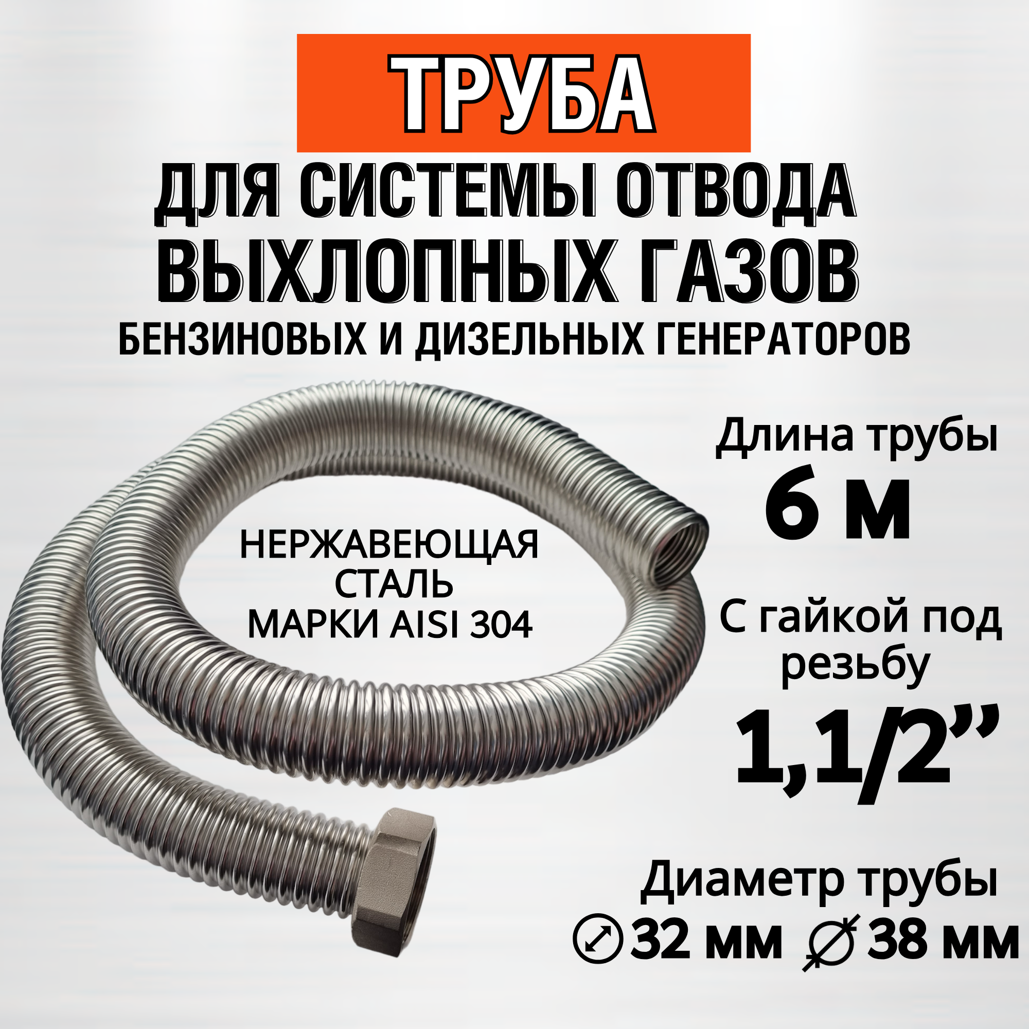Генераторы Труба 6м с гайкой 1,1/2" Отвод выхлопных газов генератора