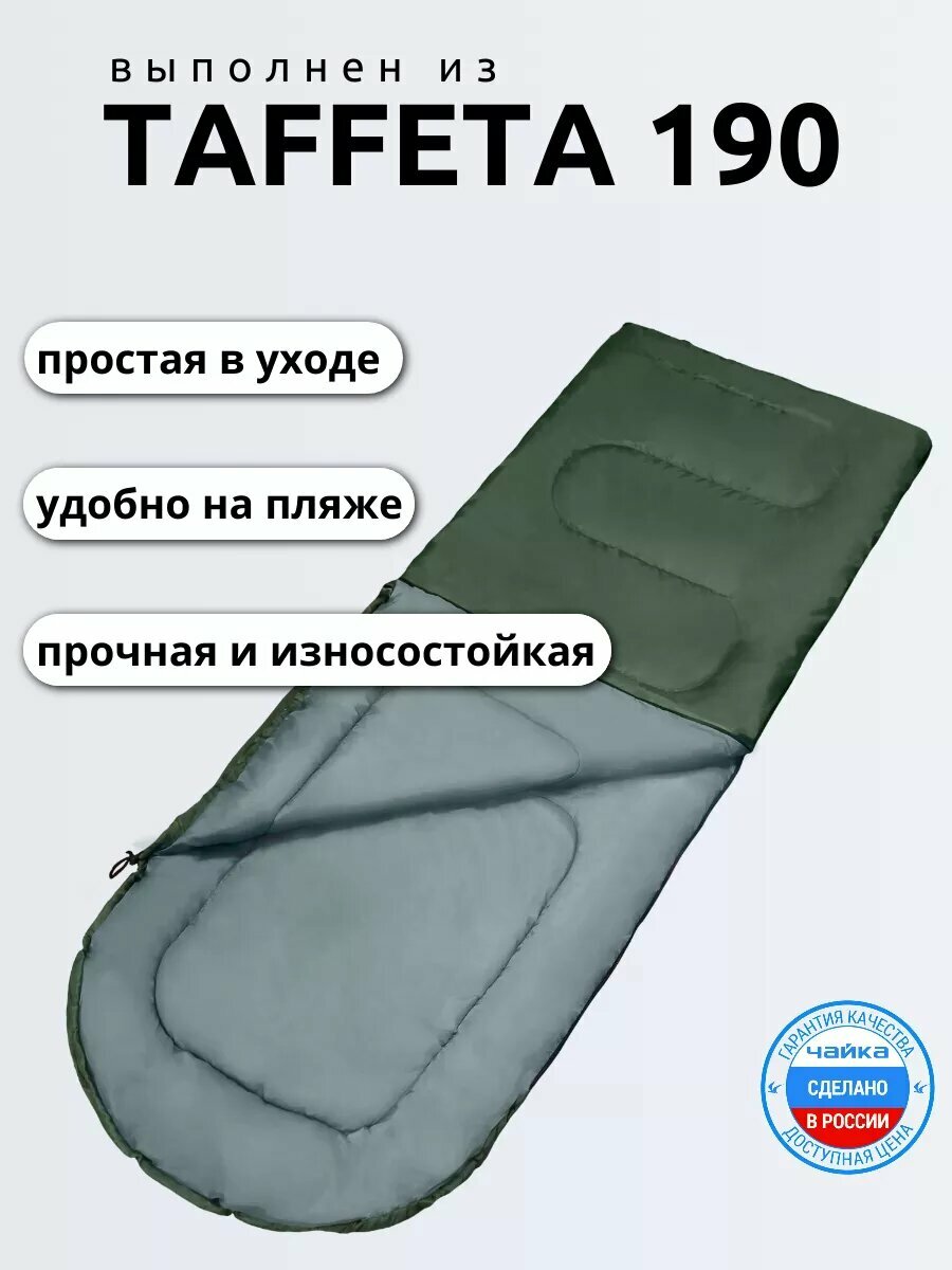 Спальные мешки Спальник туристический ЧАЙКА СП150 хаки/серый