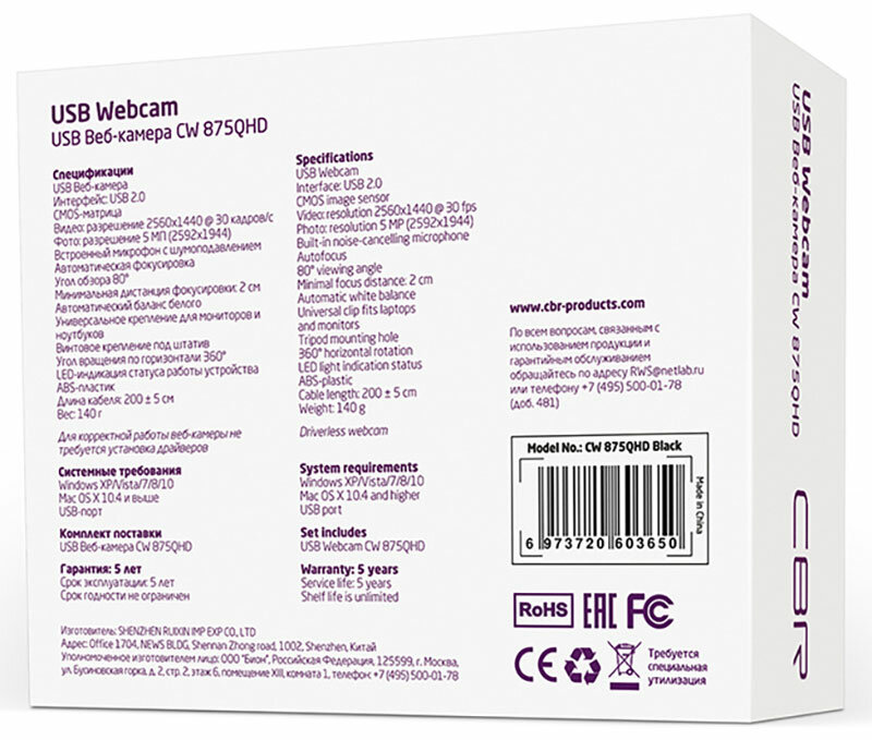 WEB-камеры Веб-камера CBR CW 875QHD черный (CW 875QHD Black) .