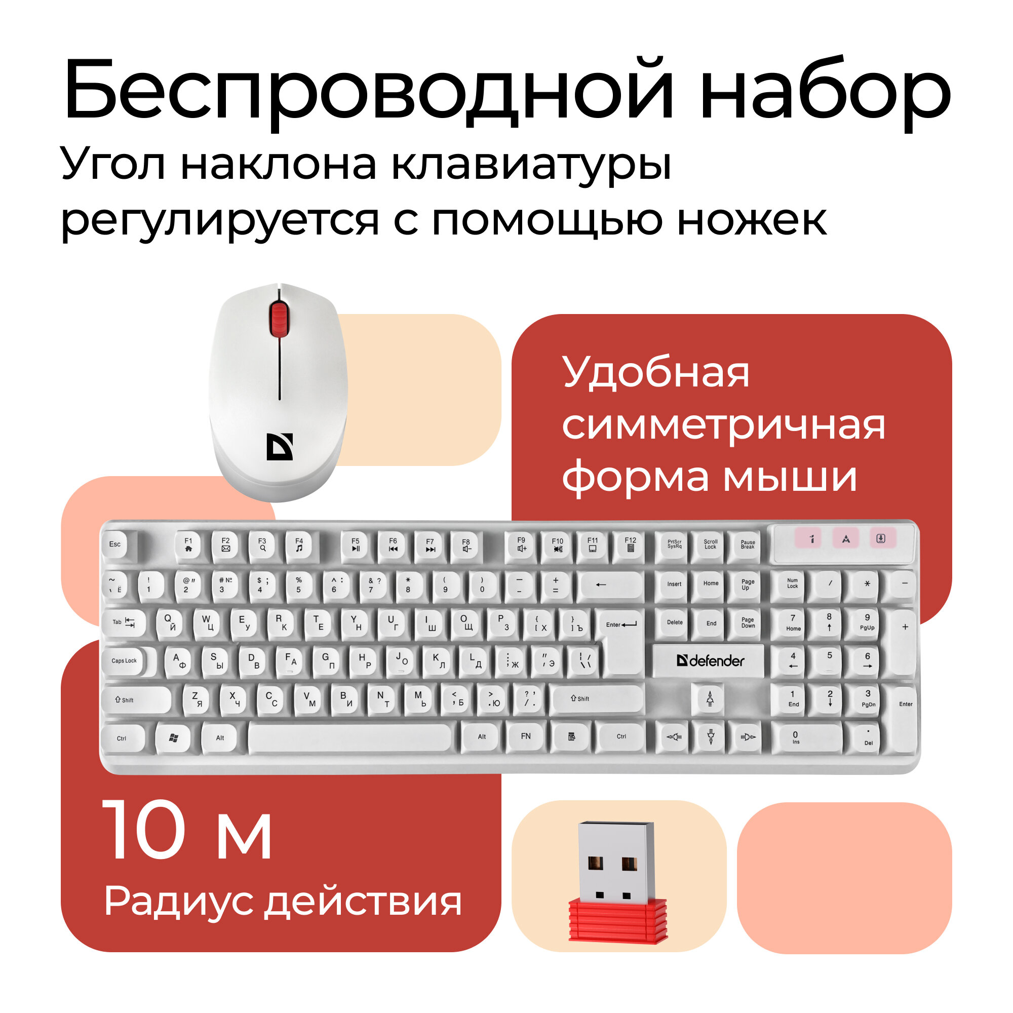 Беспроводная клавиатура и мышь Defender Berkeley C-925 Nano комплект мультимедиа