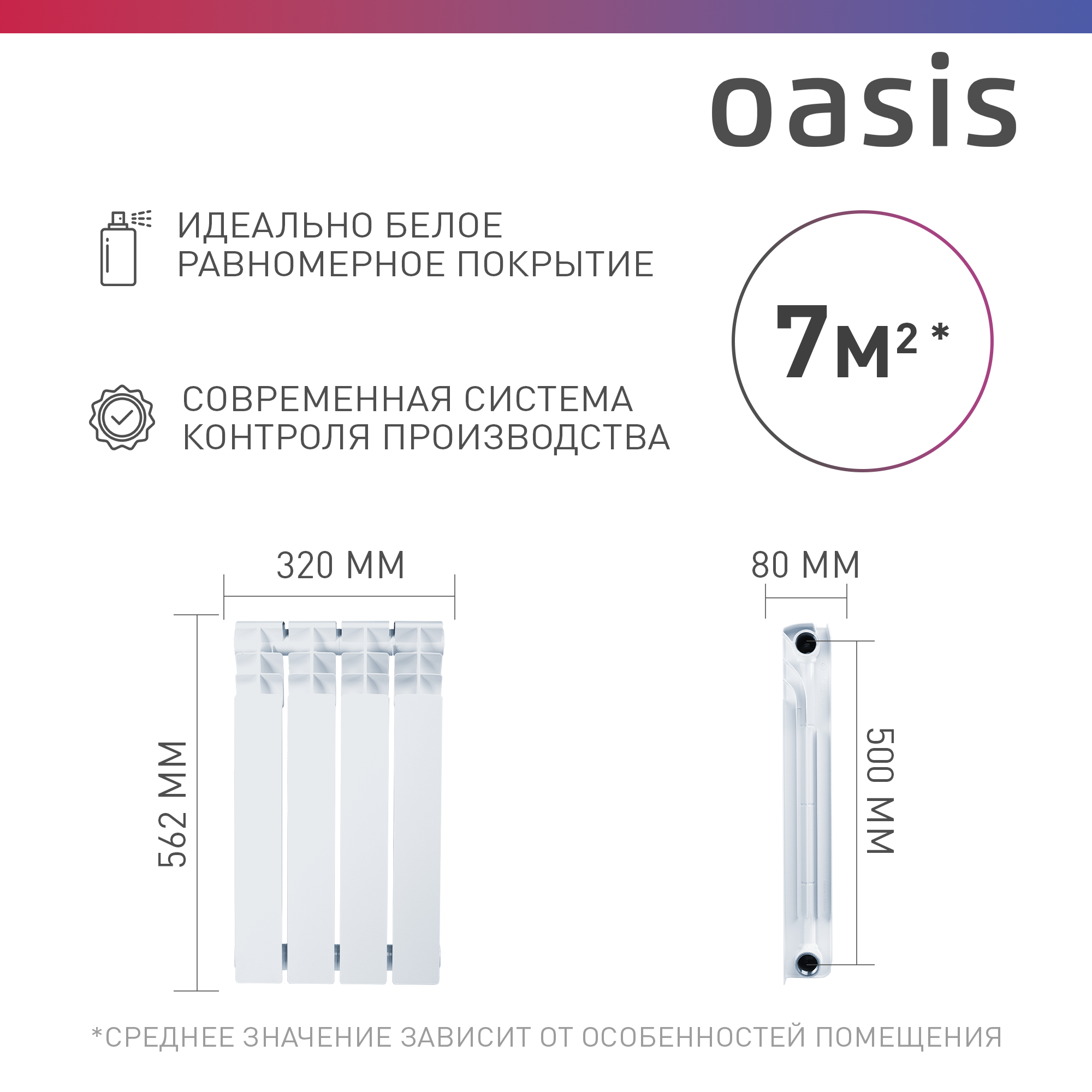 Биметаллический радиатор Oasis ECO 500/80 7 секций, 1064 Вт, Россия