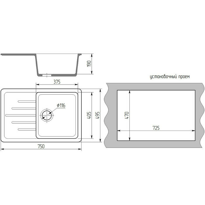 | Размеры врезного отверстия (накладная) | 770x480 мм |