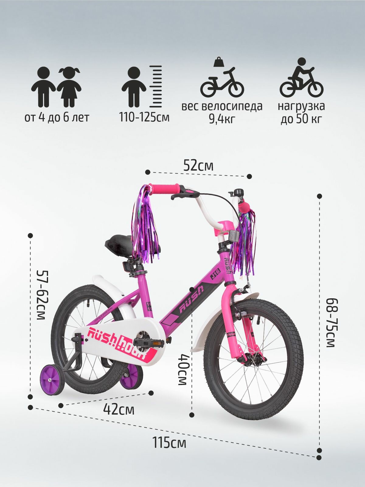 | Комплектация | боковые колеса / крылья / багажник / корзина на руле / сигнал/звонок |