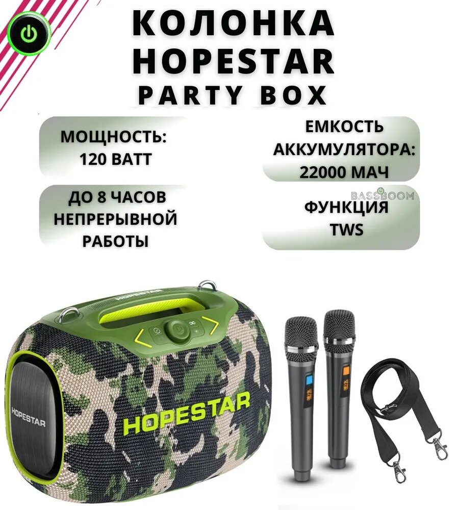 Аудиосистемы Портативная Bluetooth Колонка Hopestar Party Box Хаки (2 микрофона)