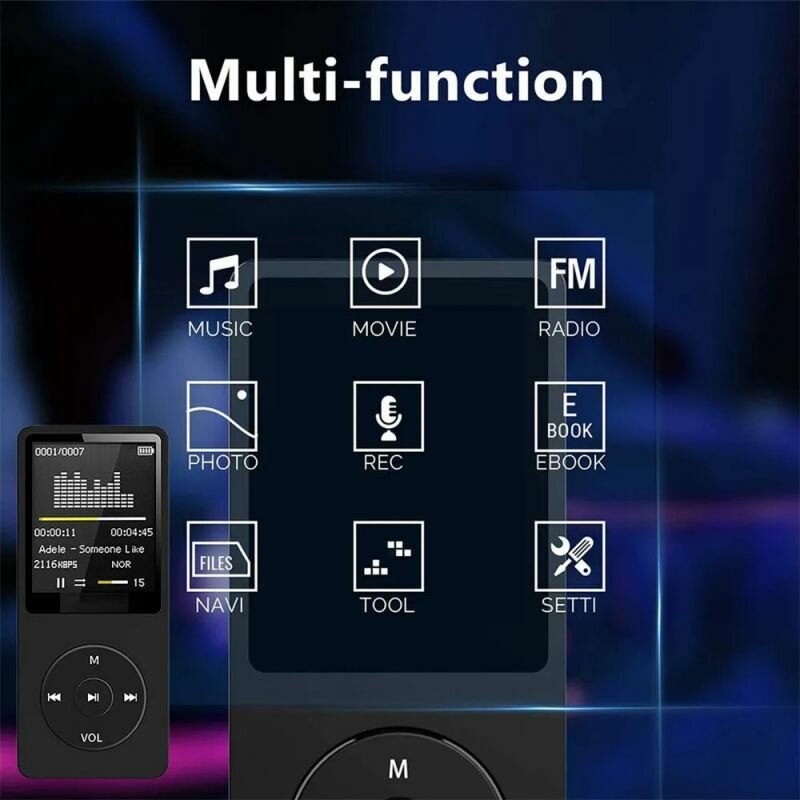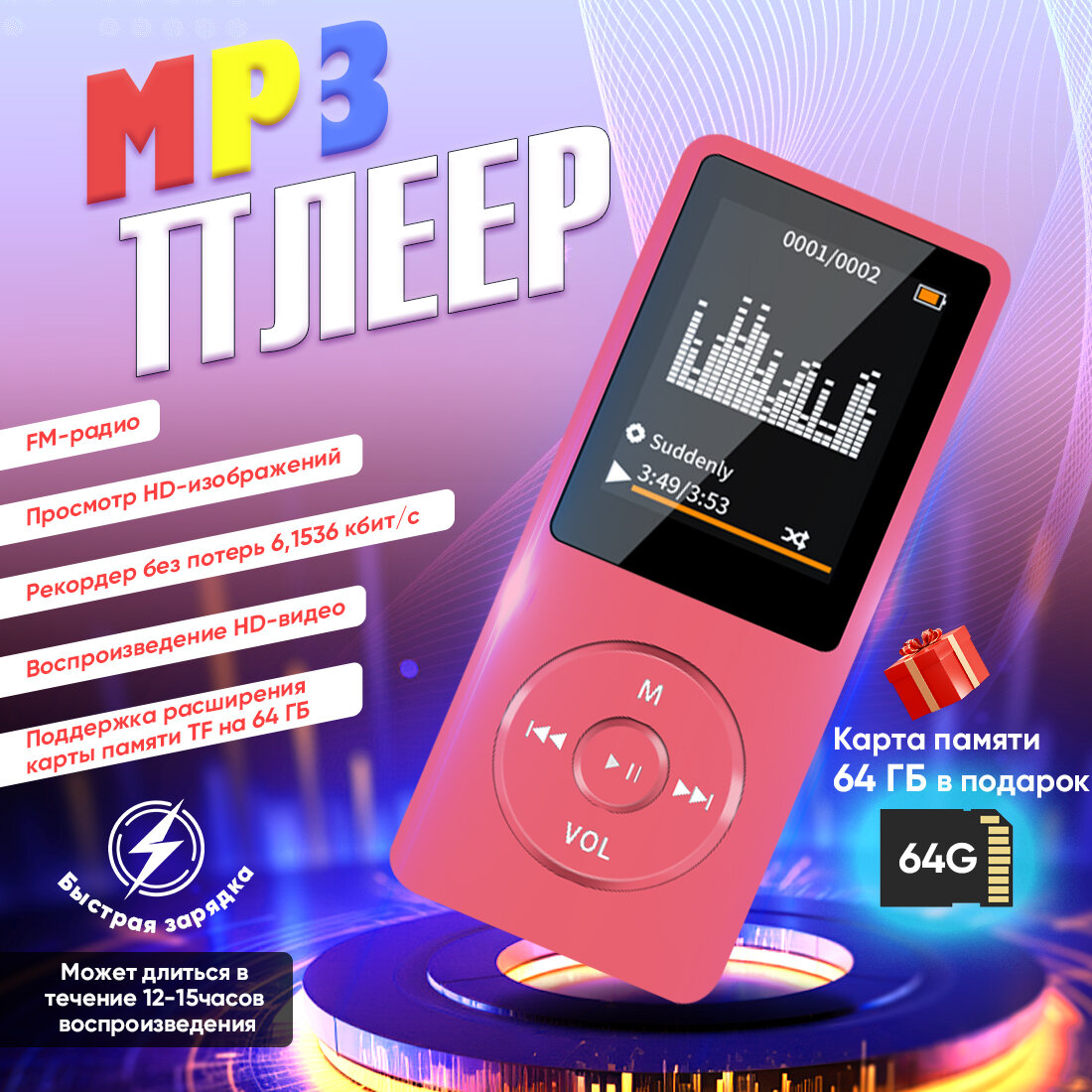 MP3-плееры Беспроводной MP3-плеер 64 ГБ с Bluetooth, наушниками, экраном и FM-радио, Красный