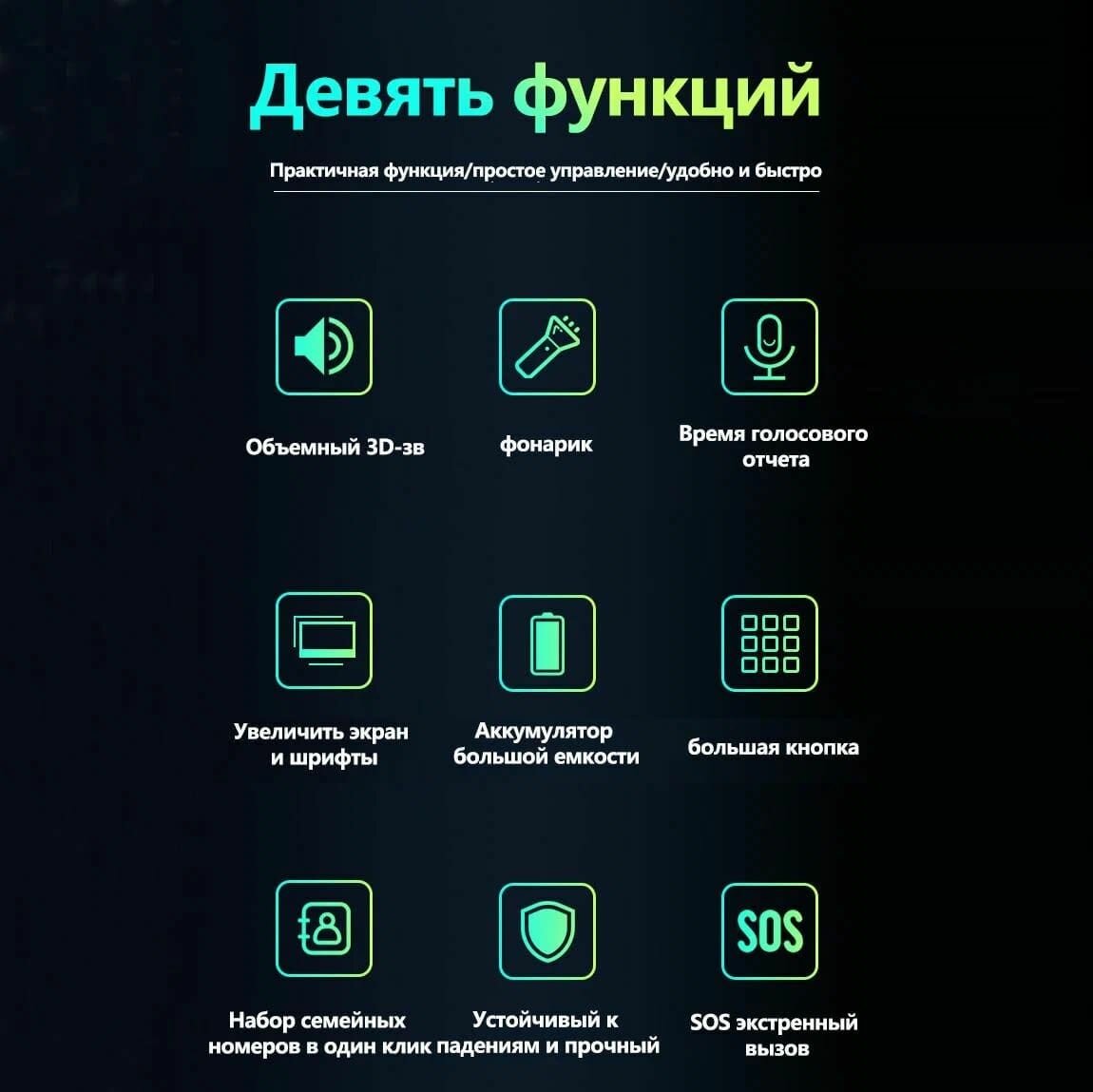 | Функции и возможности | FM-приемник / кнопка экстренного вызова / полноценный фонарик |