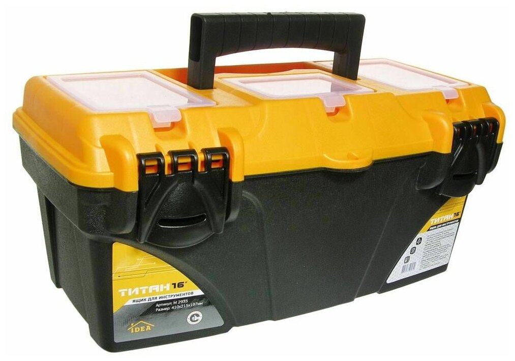 Ящик для инструментов, 16 '', 41х21.5х19.7 см, пластик, Idea, Титан, пластиковый замок, 3 секции, М 2935