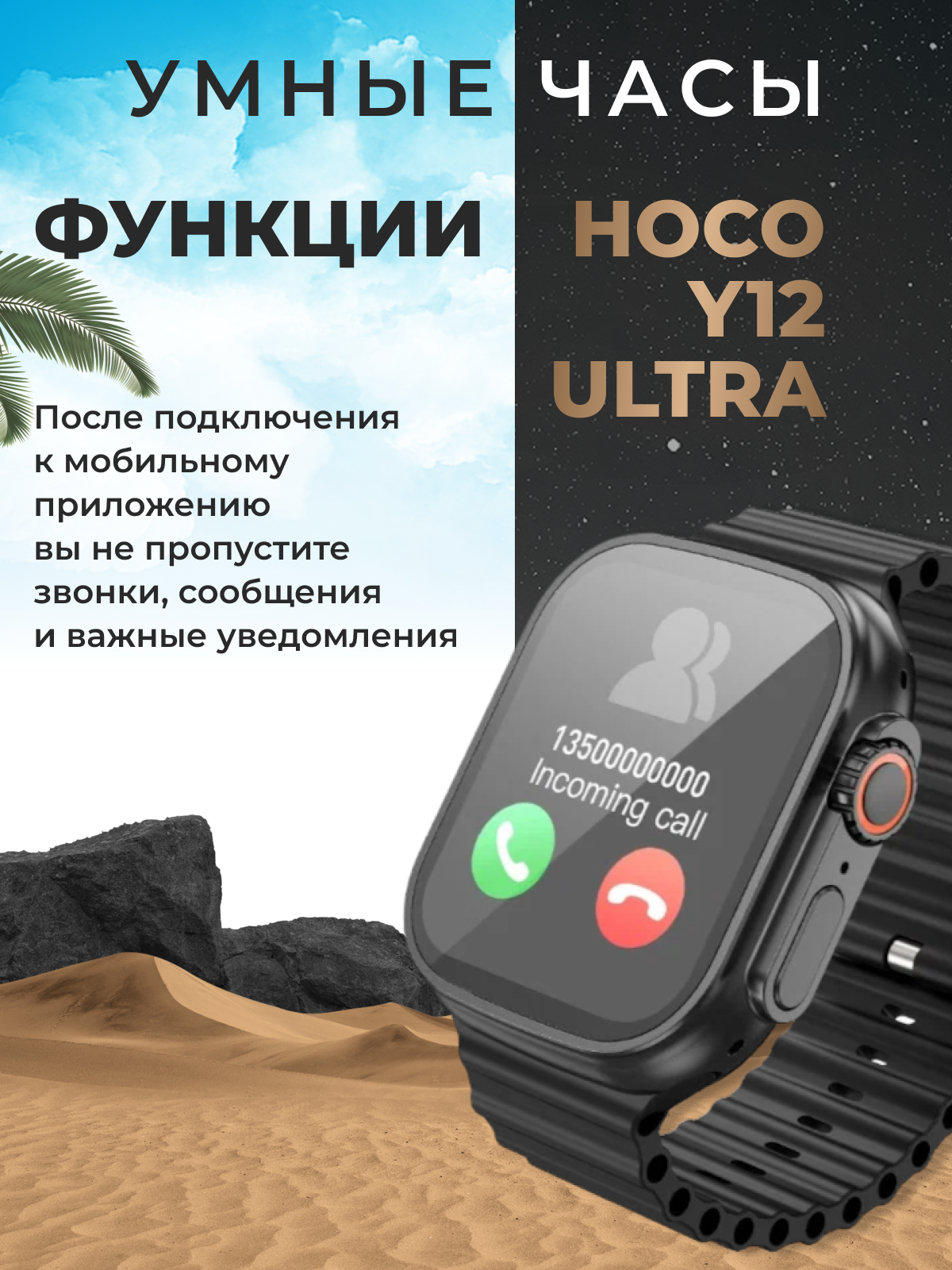 Умные часы Smart Watch HOCO Y12 ULTRA черный