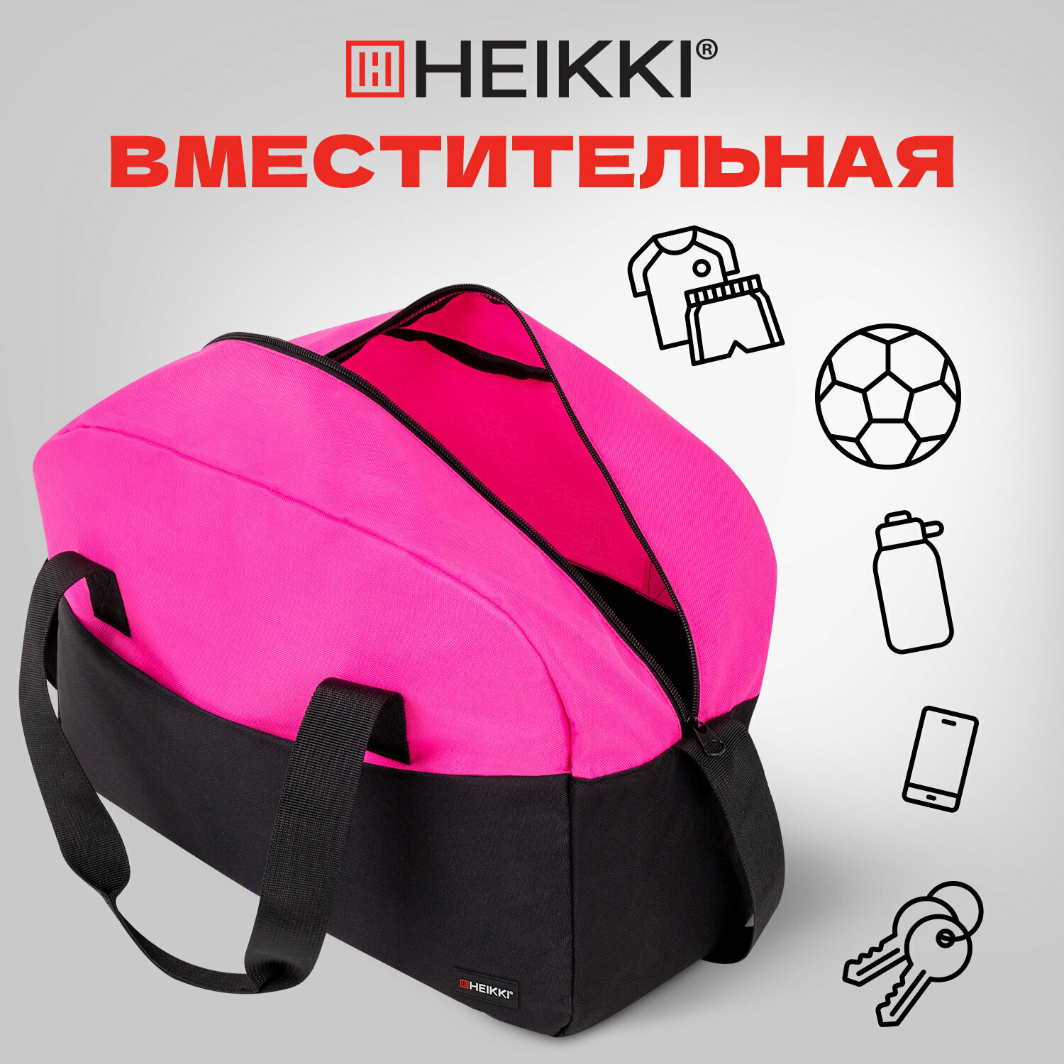 Сумки дорожные Сумка спортивная HEIKKI BASE (хейки), карман на молнии, черная/фуксия, 30x44x17 см, 272621