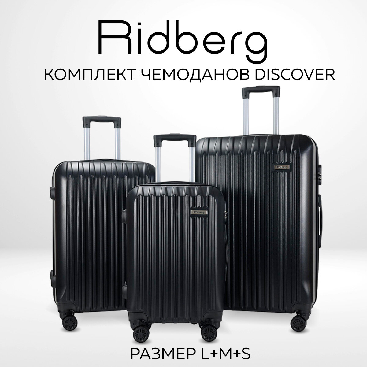 Чемоданы Комплект чемоданов Ridberg Discover размер S/M/L, 3 шт.(материал: ABS-пластик, кодовый замок, съемные колесики, черный)